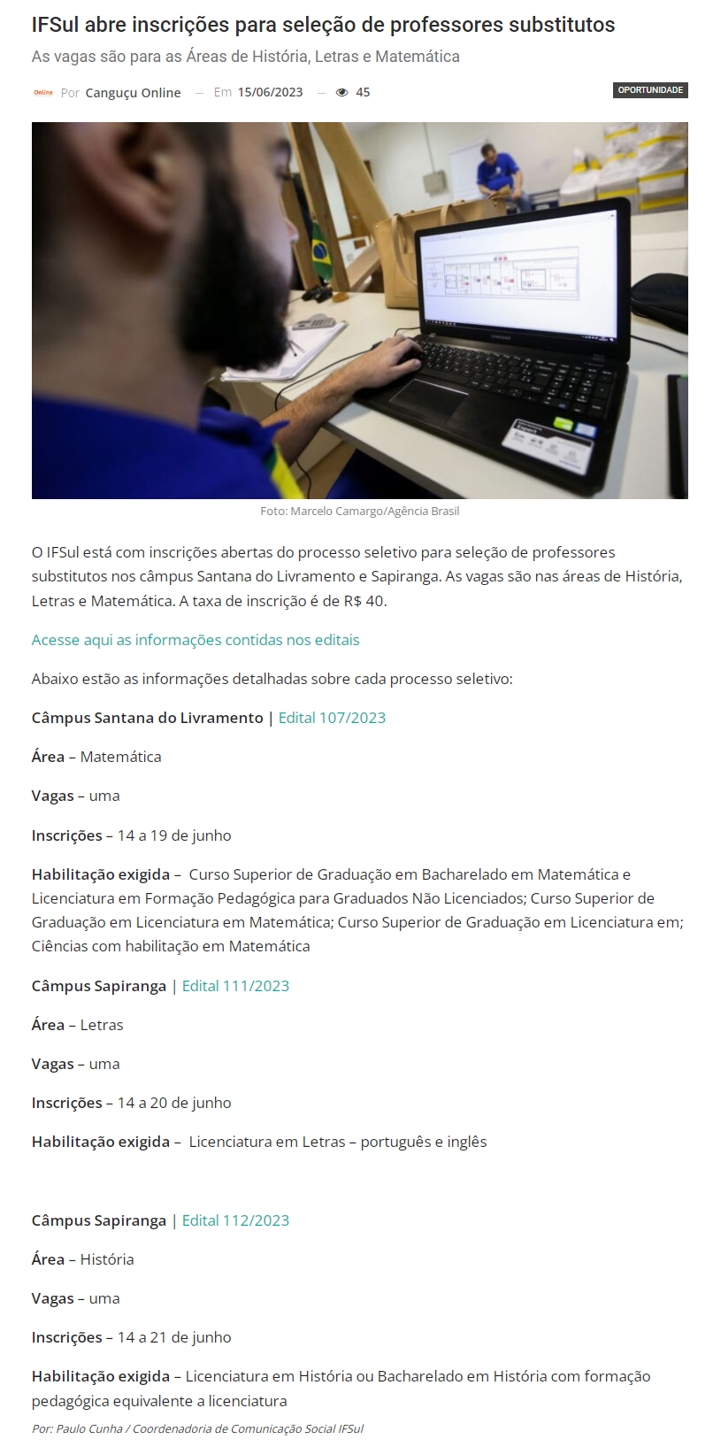 Canguçu Online - IFSul abre inscrições para seleção de professores substitutos
