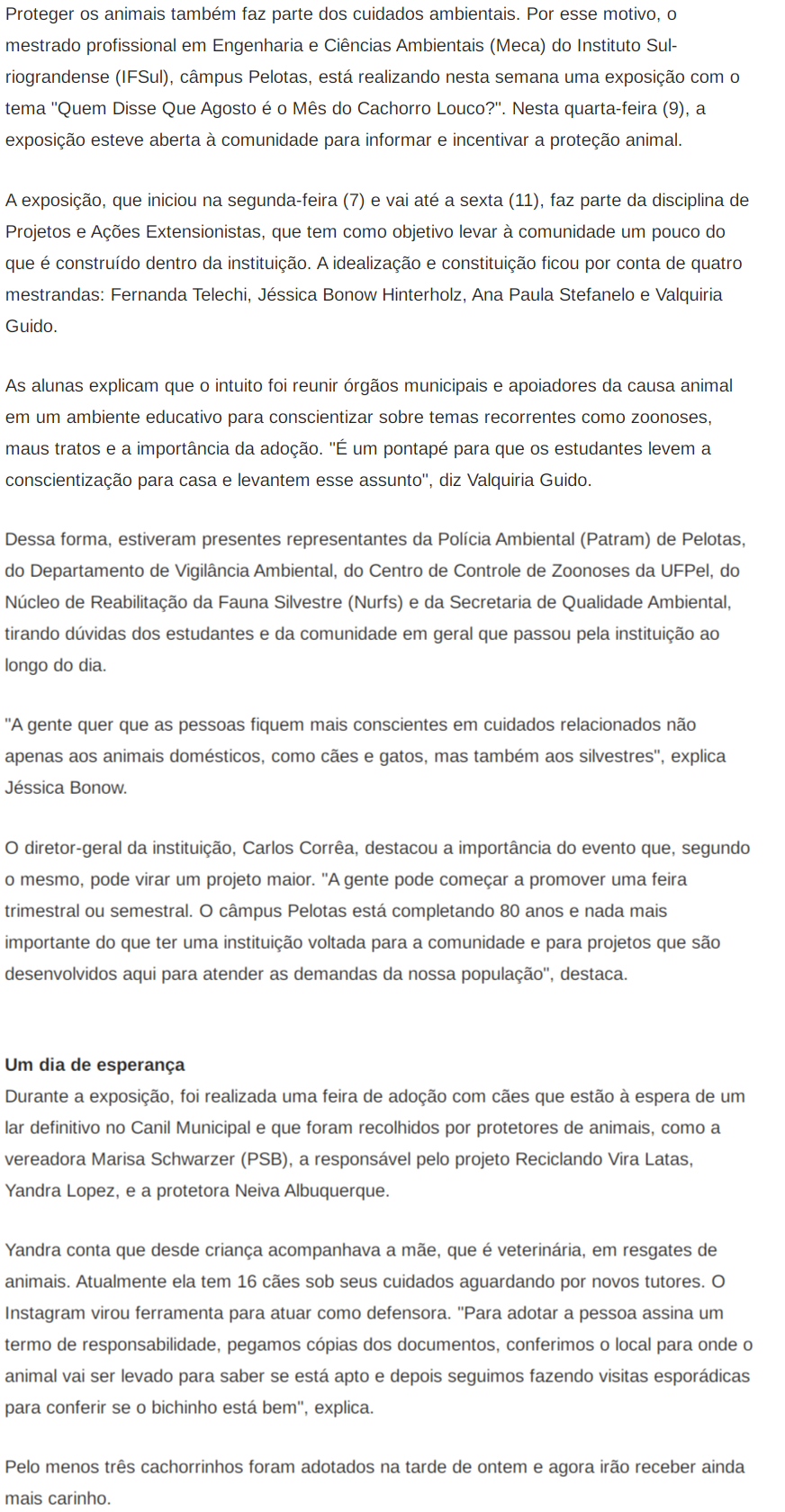 Diário Popular - IFSul realiza exposição para a conscientização dos cuidados animais