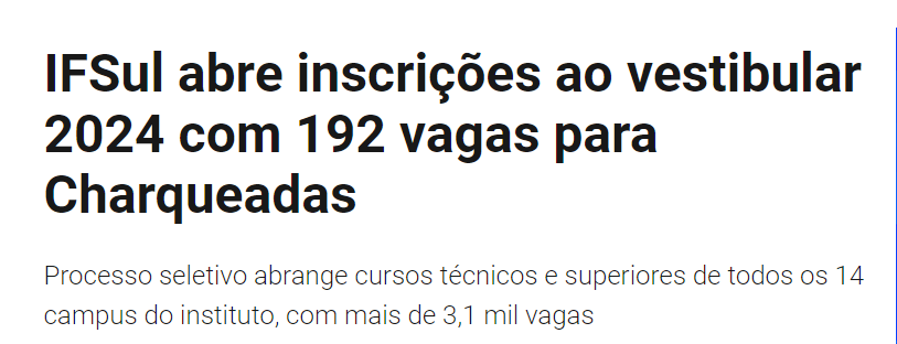Portal de Notícias - IFSul abre inscrições ao vestibular 2024 com 192 vagas para Charqueadas