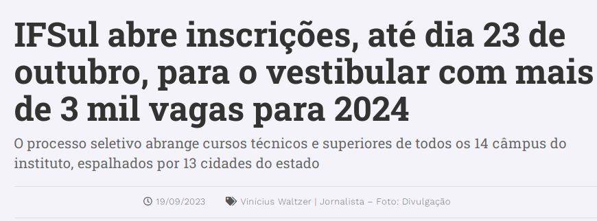 Portal de Camaquã - IFSul abre inscrições, até dia 23 de outubro, para o vestibular com mais de 3 mil vagas para 2024