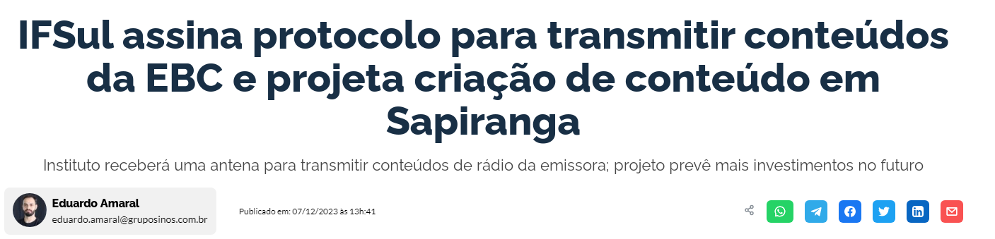 ABC - FSul assina protocolo para transmitir conteúdos da EBC e projeta criação de conteúdo em Sapiranga