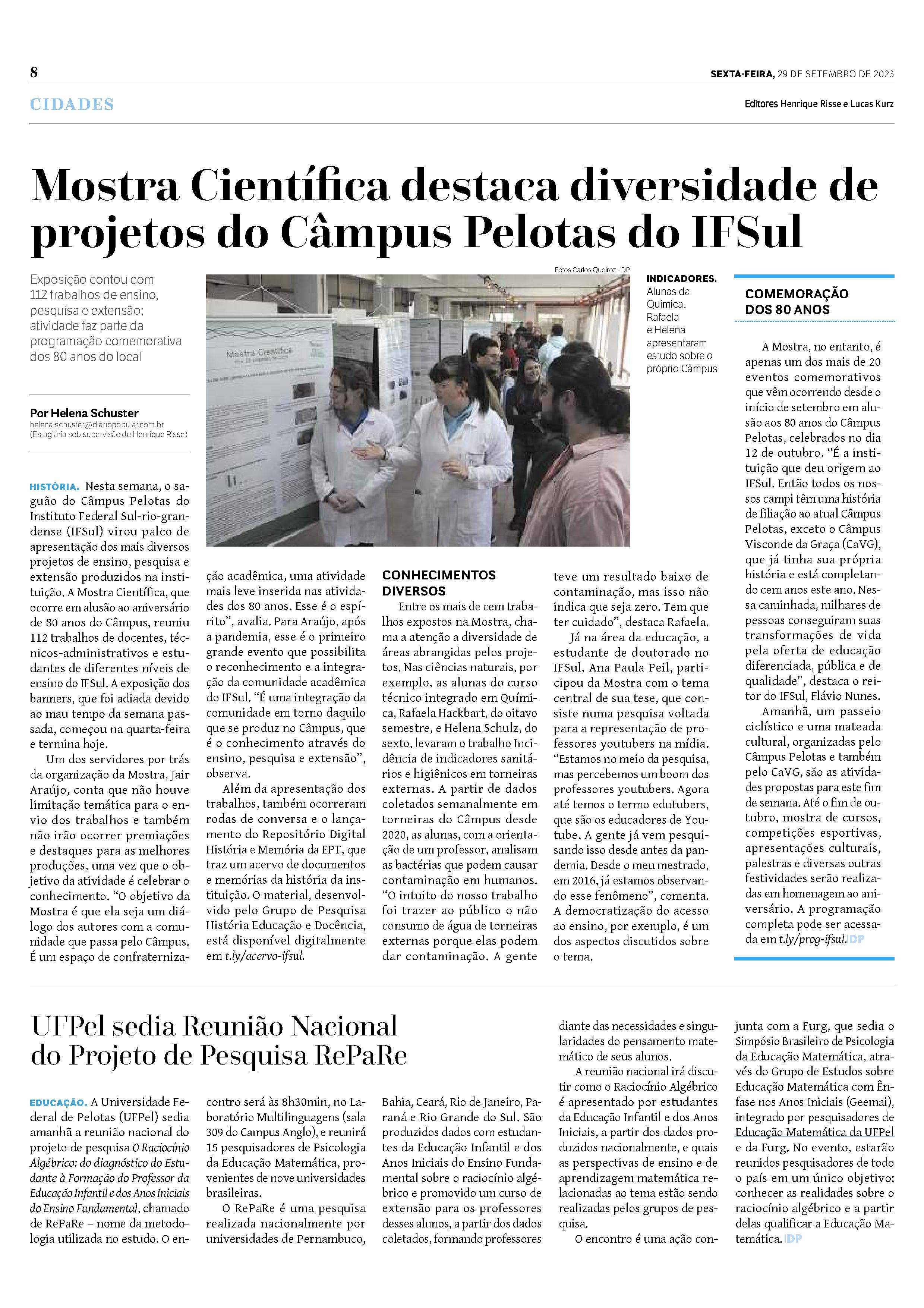 Diário Popular - Mostra científica destaca diversidade de projetos no câmpus Pelotas do IFSul