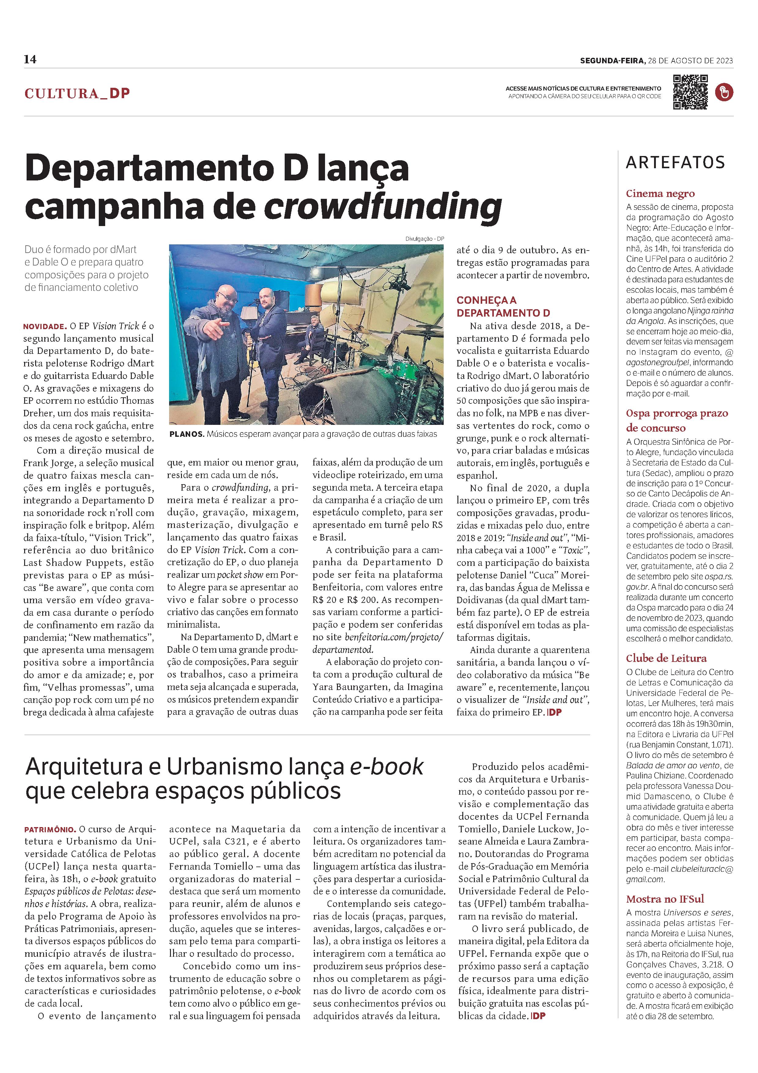 Diário Popular - Nota sobre a mostra Universos e Seres na Galeria Cultural do IFSul