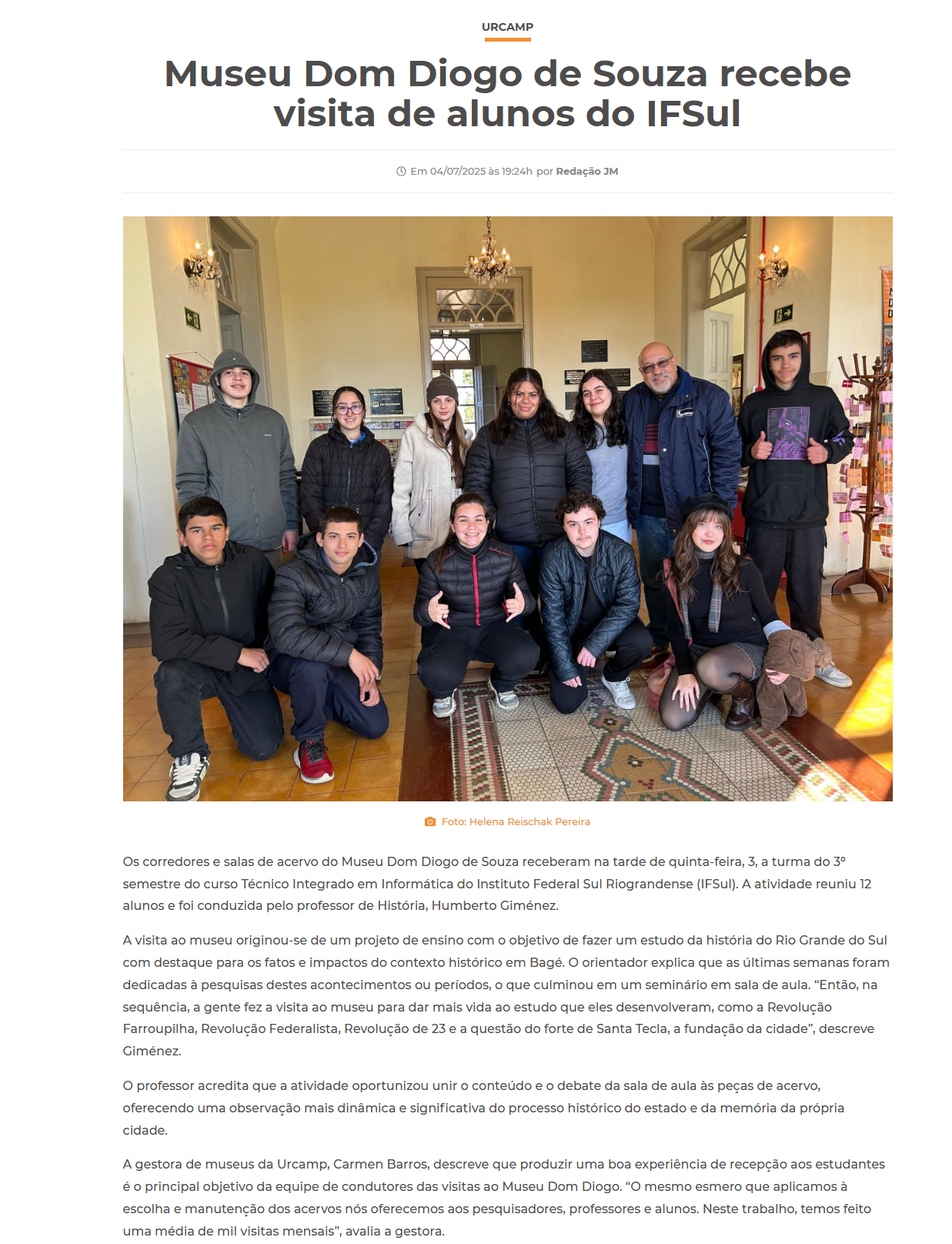 Jornal Minuano - Museu Dom Diego recebe visita de alunos do IFSul