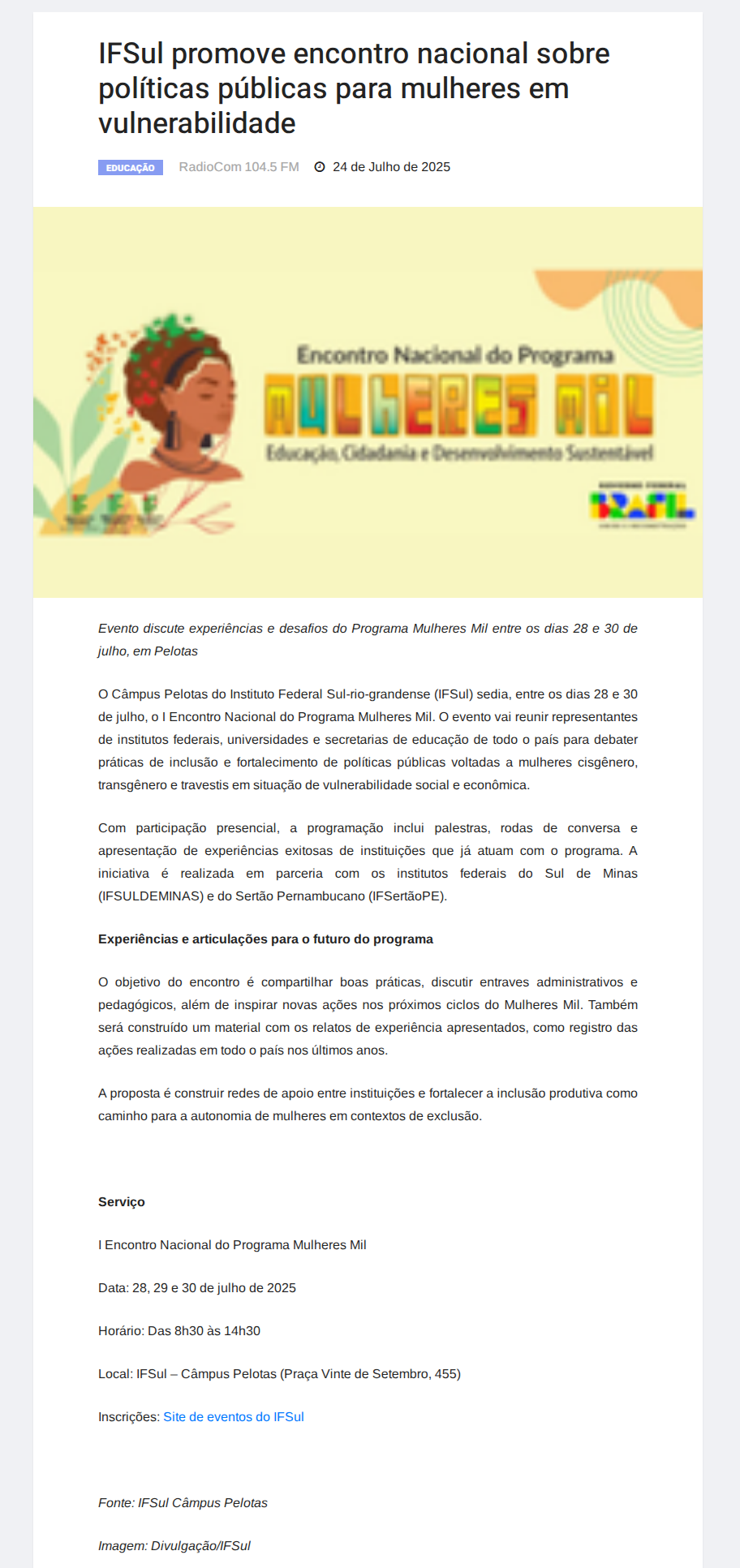 RádioCom - IFSul promove encontro nacional sobre políticas públicas para mulheres em vulnerabilidade