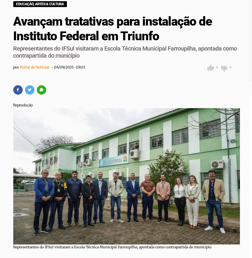 Portal de Notícias - Avançam tratativas para instalação de Instituto Federal em Triunfo
