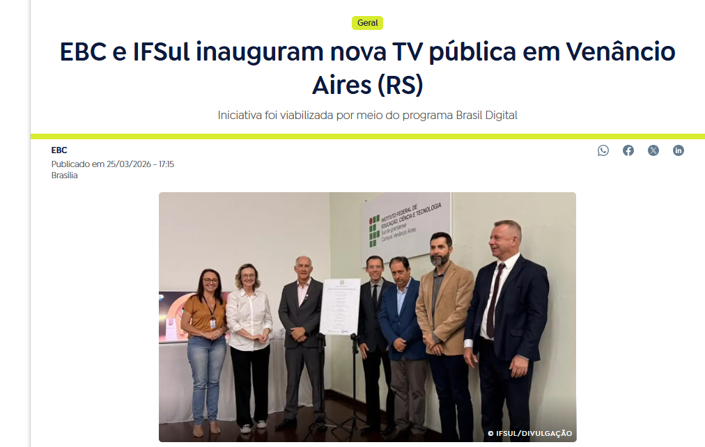 Agência Brasil - EBC e IFSul inauguram nova TV pública em Venâncio Aires (RS) Iniciativa foi viabilizada por meio do programa Brasil Digital