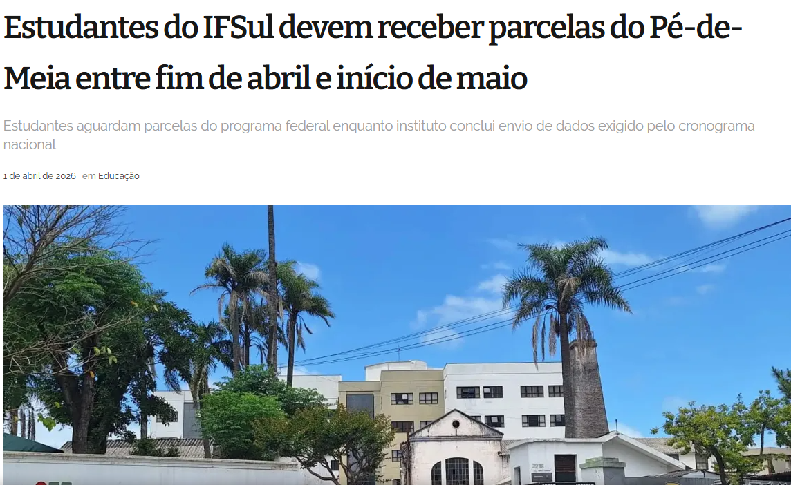 RádioCom - Estudantes do IFSul devem receber parcelas do Pé-de-Meia entre fim de abril e início de maio