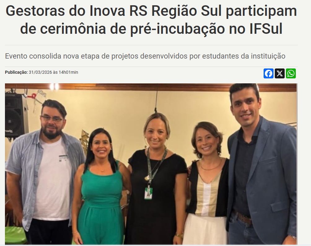 Inova RS - Gestoras do Inova RS Região Sul participam de cerimônia de pré-incubação no IFSul