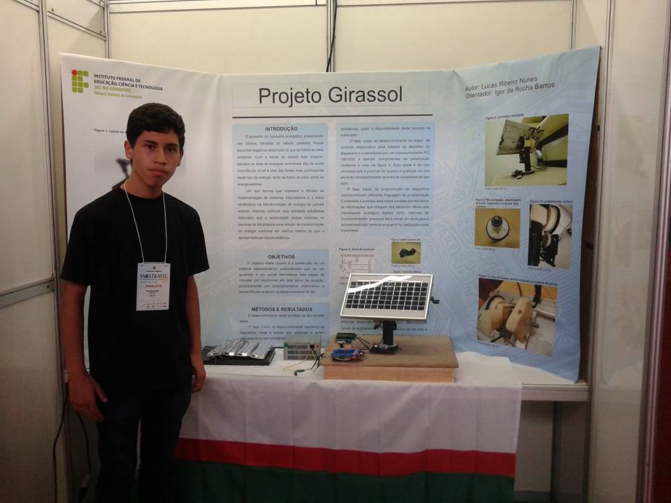 O projeto apresentado pelo campus Santana do Livramento, tratou de um  seguidor solar automatizado, dispositivo que tem a finalidade de  possibilitar um aumento no rendimento na transformação de energia  luminosa proveniente do sol em energia elétrica através da correção do  angulo de inclinação tanto no eixo horizontal quanto no eixo vertical  de um painel fotovoltaico no decorrer do dia. Para o professor Igor da Rocha Barros, orientador do projeto, "as experiências vivenciadas pelo aluno foram impares em sua vida, lá  ele pode ter contato com jovens pesquisadores não só do Brasil, mas  também de outros lugares do mundo, vários idiomas, vários conceitos,  muitas histórias semelhantes a dele de perseverança e dedicação".