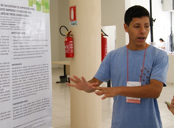 A estrutura oferecida no evento impressionou o estudante Wesley dos Santos, do campus avançado Sapiranga. Acompanhado do professor Marcos Giovane de Quevedo Rijo, o aluno aprovou a organização física dos espaços de apresentação e elogiou a metodologia de avaliação dos trabalhos. “O fato de realizarmos as apresentações orais em salas específicas para isso exige uma preparação muito maior por parte do aluno”, avaliou o estudante, que está apresentando sua pesquisa para a utilização de uma impressora comum na impressão direta sobre circuitos elétricos. O professor Marcos também destacou o aspecto positivo da participação de estudantes do campus em eventos da instituição. “Nosso campus é relativamente novo, então experiências como essa possibilitam aos nossos alunos conhecer a dimensão do instituto em que eles estudam”.