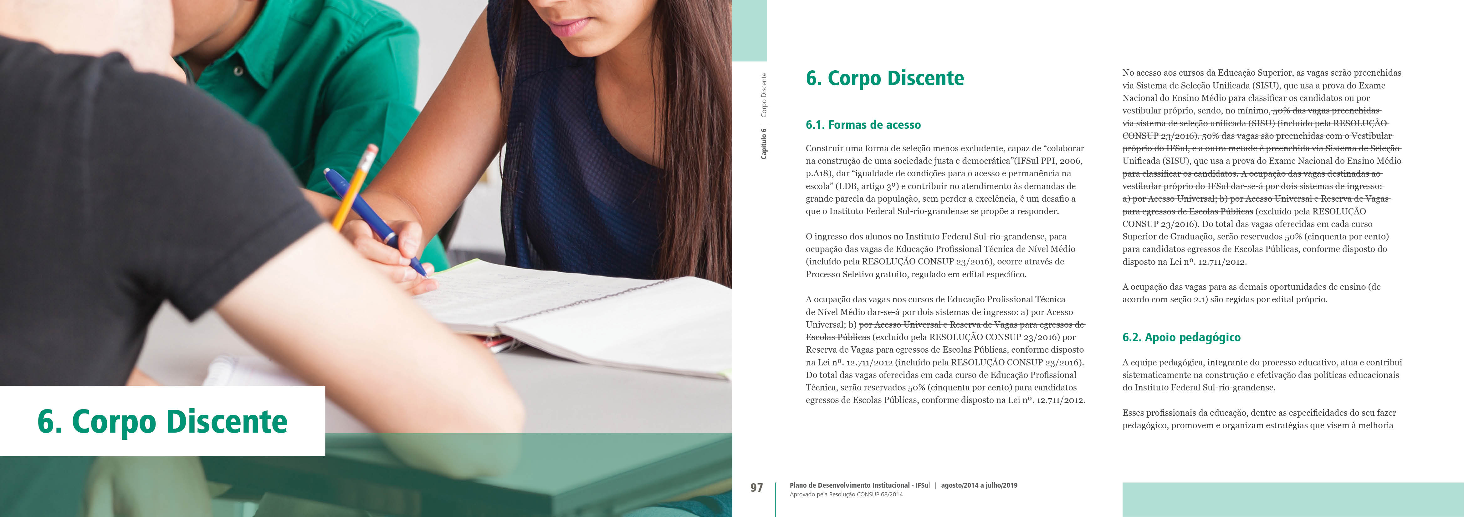 O Plano de Desenvolvimento Institucional (PDI) está com um novo visual, criado para favorecer a leitura: “Por ser um documento bastante extenso, a diagramação e projeto gráfico foram elaborados com o objetivo de tornar a leitura mais leve e convidativa”, diz a responsável pelo trabalho, a programadora visual da Coordenadoria de Comunicação Social (CCS), Patrícia Strelow.
