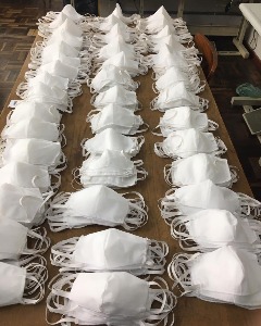 O processo de fabricação do material possui uma série de etapas. Além da prototipagem, a equipe envolvida no trabalho também realiza o risco, o corte e a costura do tecido. Segundo a coordenadora, todas as máscaras são duplas e descartáveis.