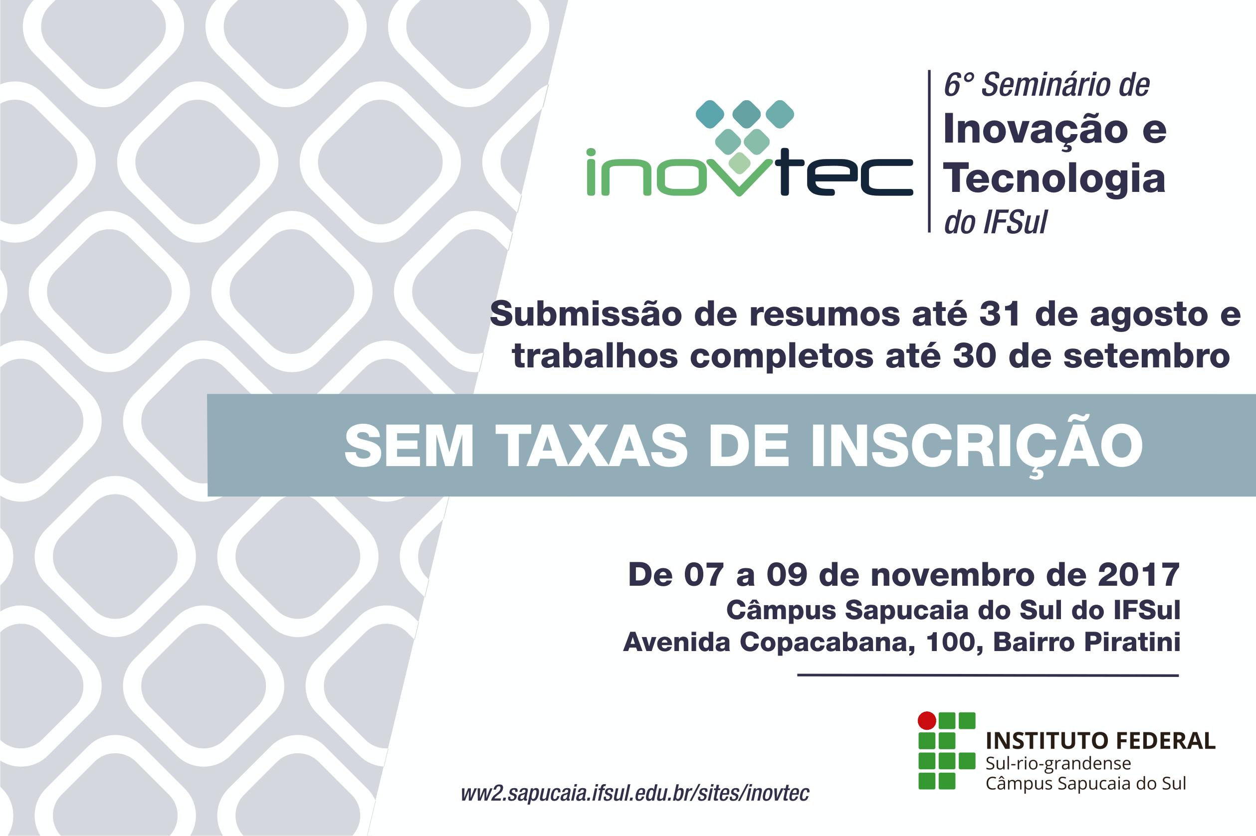Não há taxas para inscrição de trabalhos no evento
