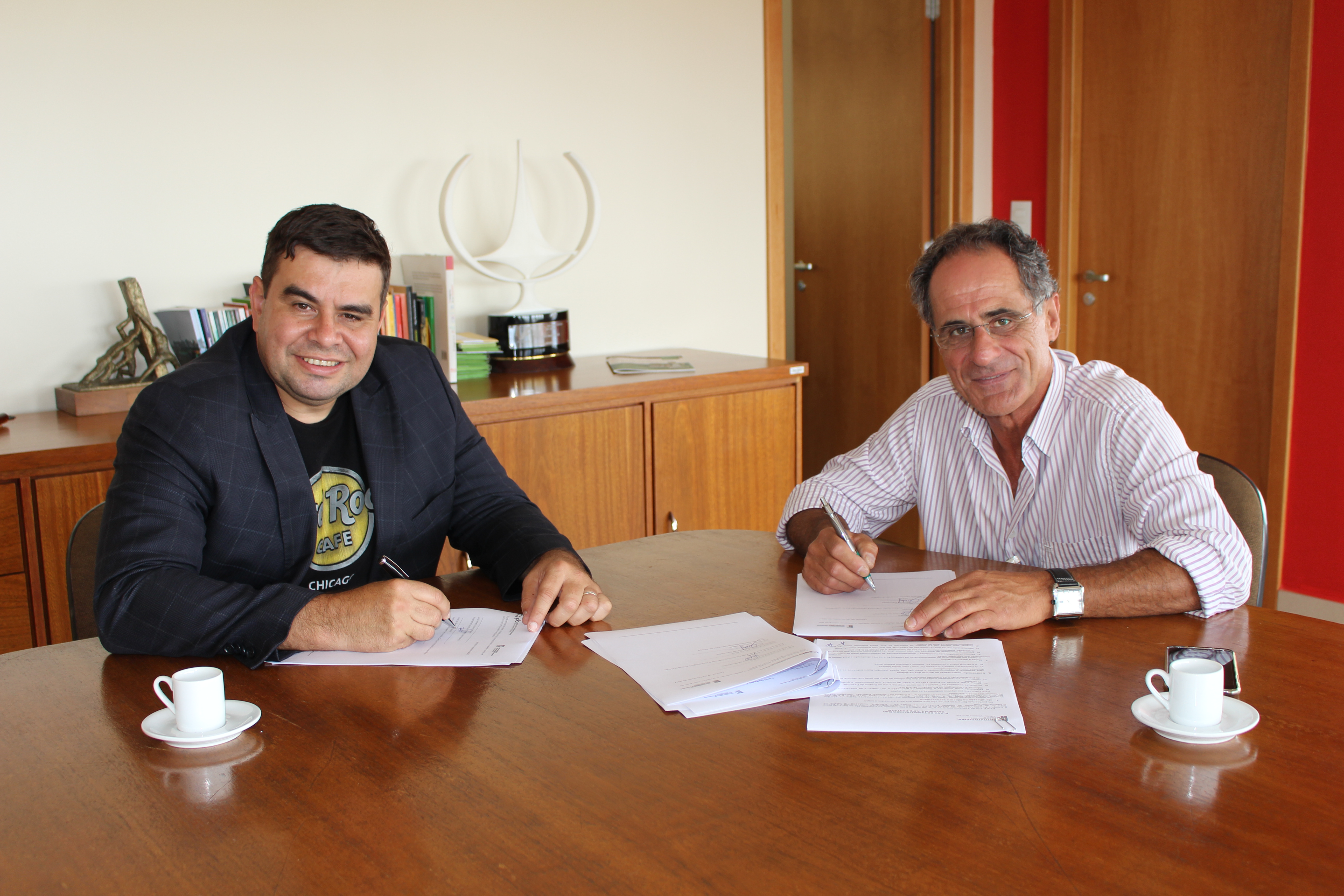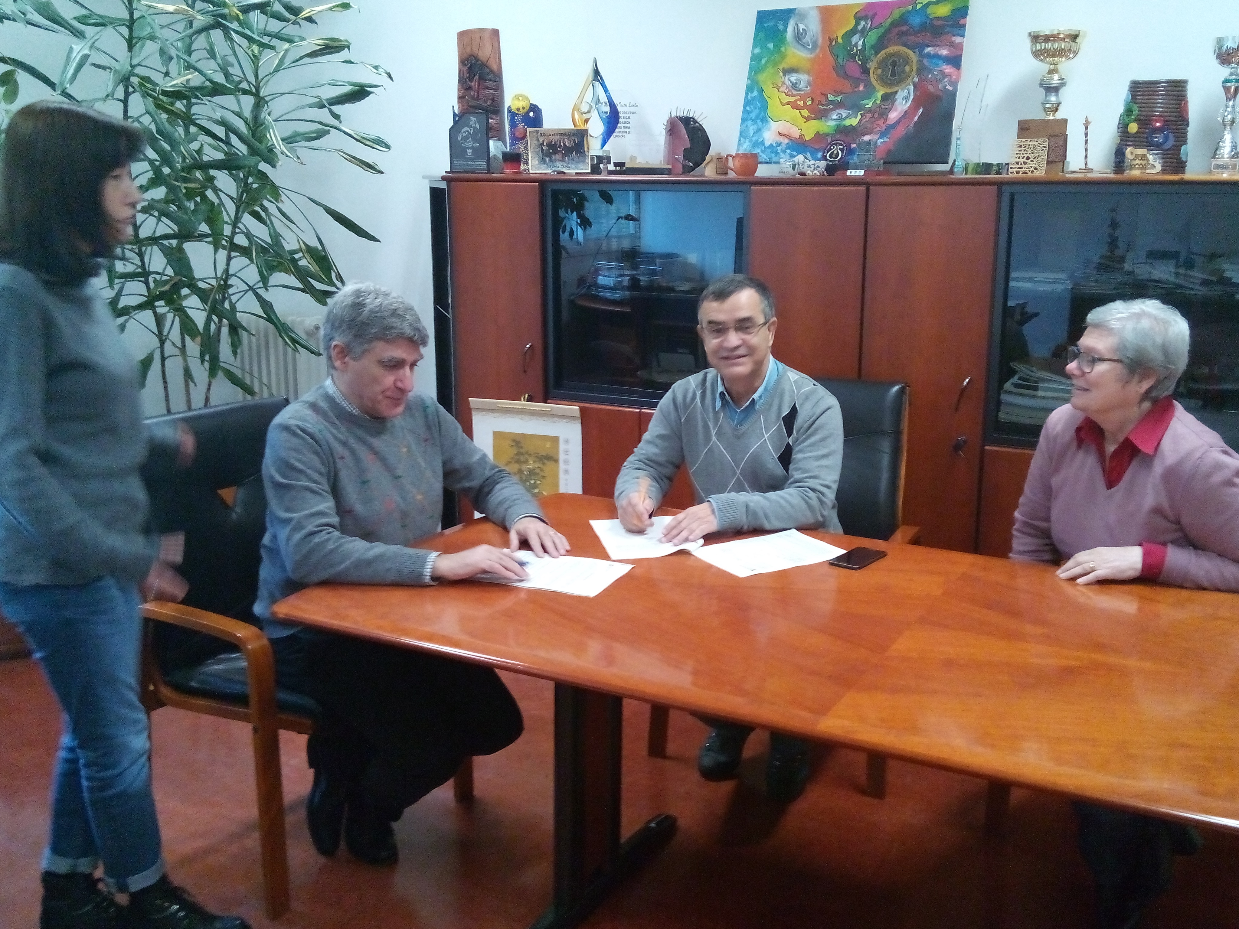 O termo foi assinado pelos reitores Marcelo Bender e José Sobrinho, representando as instituições e pelos diretores Álvaro Nebel, do câmpus Pelotas-Visconde da Graça, e Antonio Ribeiro Alves, da ESE/IPB. Em reunião com o diretor Ribeiro Alves, o professor Vitor Manzke assinou o documento e o plano de trabalho como coordenador da ação. Também participaram da assinatura do termo a presidente da Comissão Científica, Delmina Pires, e a vice-diretora da ESE/IPB, Maria Cristina Martins.