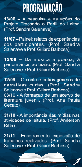 O público-alvo do Literacriando são professores de língua portuguesa do ensino médio e das séries finais do ensino fundamental, além de bibliotecários e equipe diretiva. Haverá certificado de 30 horas para quem comparecer a, pelo menos, 80% das atividades propostas.