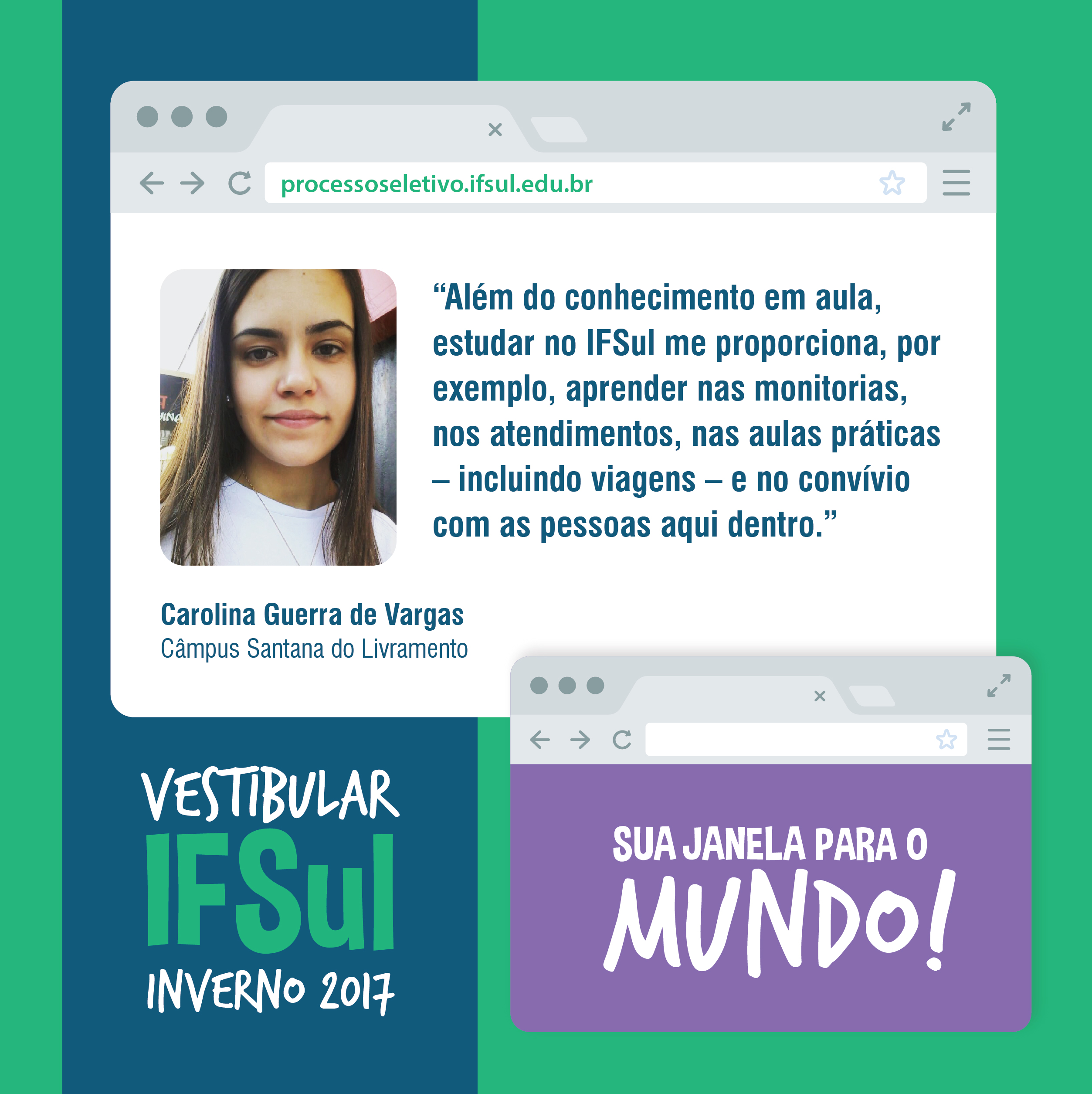 Quer fazer o Vestibular de Inverno do IFSul? Confira o depoimento da Carolina Guerra de Vargas, do câmpus Santana do Livramento, sobre como o IFSul ampliou a sua visão de futuro