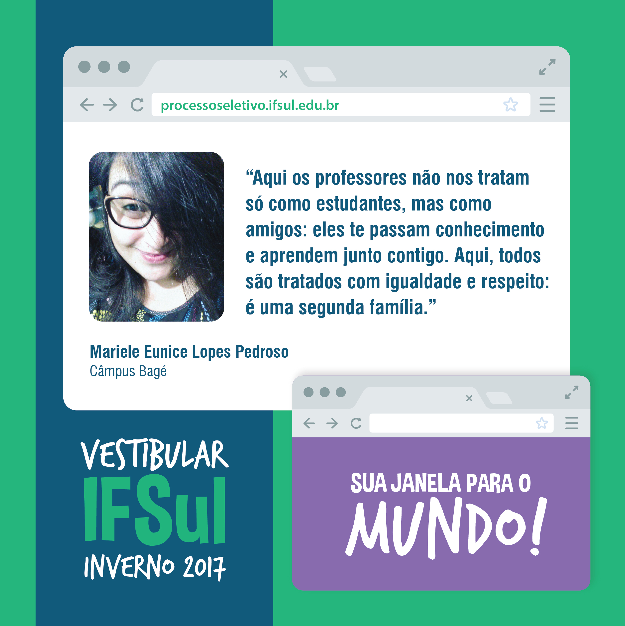 Hey, você quer fazer o Vestibular de Inverno do IFSul? A Mariele Pedroso é estudante do câmpus Bagé e conta como o instituto tornou-se uma segunda casa para ela! Vem ver!