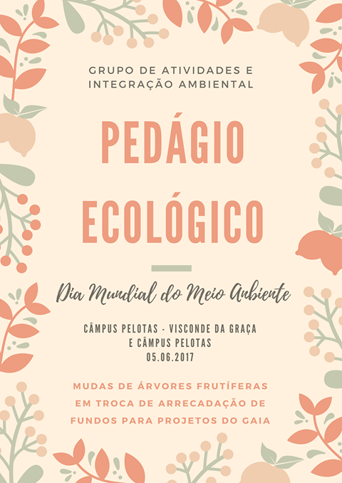 Hoje (5) é o Dia Mundial do Meio Ambiente. Para comemorar a data, o Grupo de Atividades e Integração Ambiental (Gaia) do Câmpus Pelotas – Visconde da Graça realizará sua primeira ação: um pedágio ecológico. O evento ocorrerá das 10h às 14h e das 16h às 18h no próprio câmpus.