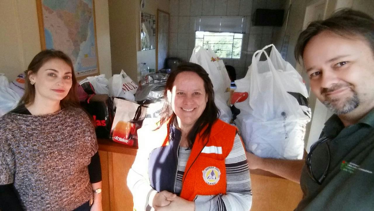 Além de Claire, também participou da entrega das doações à Defesa Civil o professor Péricles Thiele.