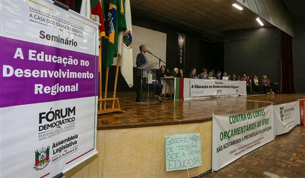 O seminário, realizado em parceria entre a Assembleia Legislativa e o Instituto Federal do RS (IFRS), contou ainda com a participação do professor Eliezer Pacheco, que já esteve à frente da Secretaria de Educação Profissional e Tecnológica do Ministério da Educação (Setec). Em sua fala, Eliezer fez um panorama da Rede Federal e abordou o impacto que as instituições estão enfrentando devido aos cortes de repasses e aos contingenciamentos no custeio. Além de Eliezer, também discursaram no evento os representantes das instituições federais do estado, além de representantes de entidades.