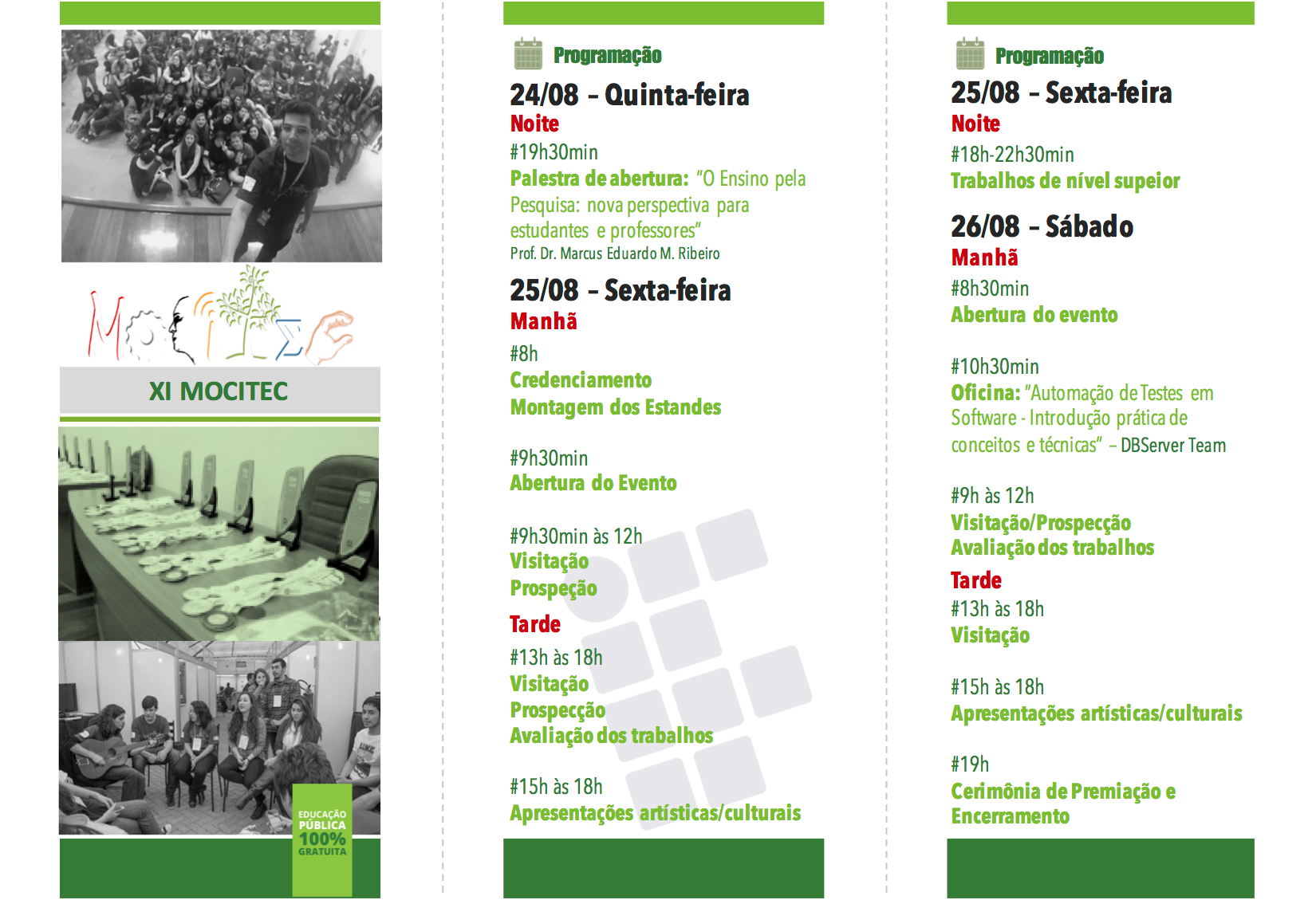 Neste ano, foram inscritos 154 projetos de pesquisa abordando diversas áreas do conhecimento. Para Vinícius Guimarães, um dos organizadores do evento, a avaliação do número de participantes é positiva e superou as expectativas. Além da mostra de trabalhos, a programação contará com apresentações artísticas, a palestra “O ensino pela pesquisa: nova perspectiva para estudantes e professores”, ministrada por Marcus Eduardo Ribeiro, e a oficina “Automação de testes em software – introdução prática de conceitos e técnicas”, dirigida pela empresa DBServer Team.