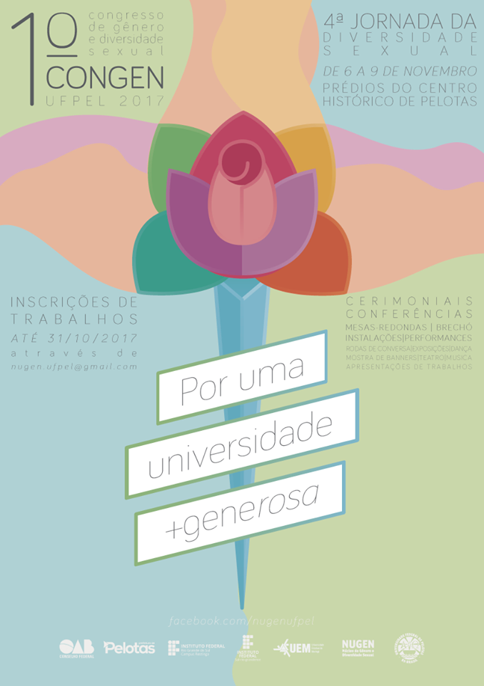 O IFSul é parceiro da Universidade Federal de Pelotas (UFPel) em seu 1º Congresso de Gênero e 4ª Jornada da Diversidade Sexual, que acontecem de 6 a 9 de novembro em prédios do centro histórico de Pelotas.