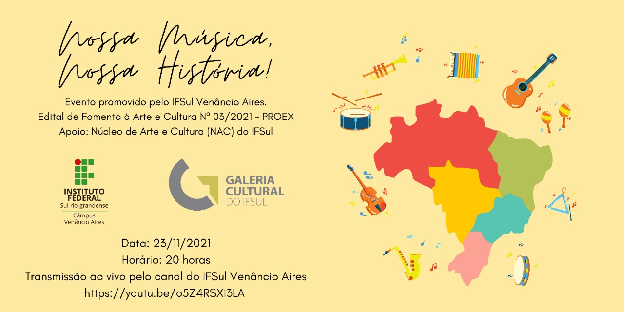 Nesse evento vamos apresentar gravações de músicas de diferentes períodos, executadas por pessoas da nossa comunidade escolar: estudantes e ex-estudantes, servidores e servidoras, familiares e amigos que se dispuseram a contribuir com suas habilidades musicais e enriquecer a nossa bagagem cultural.