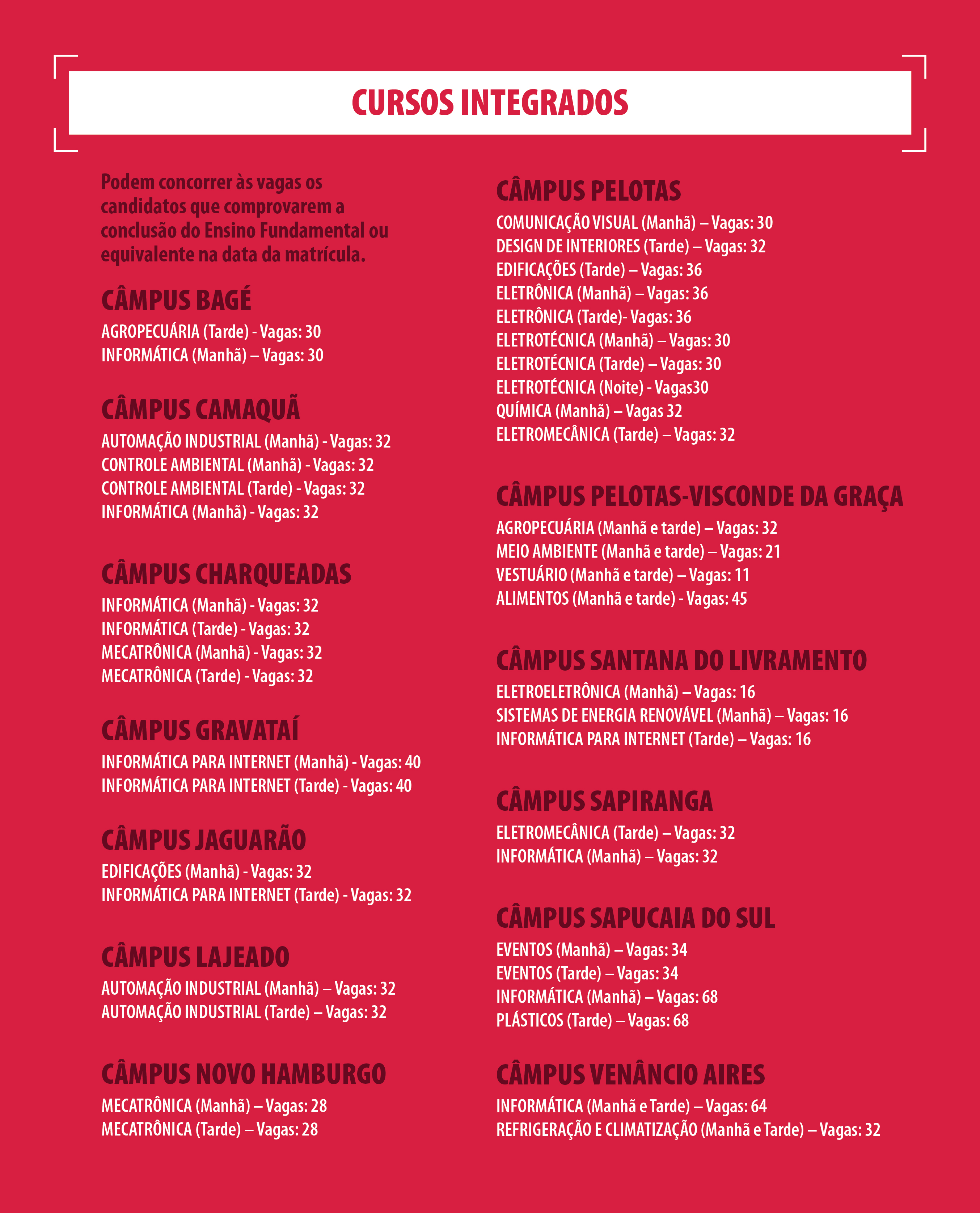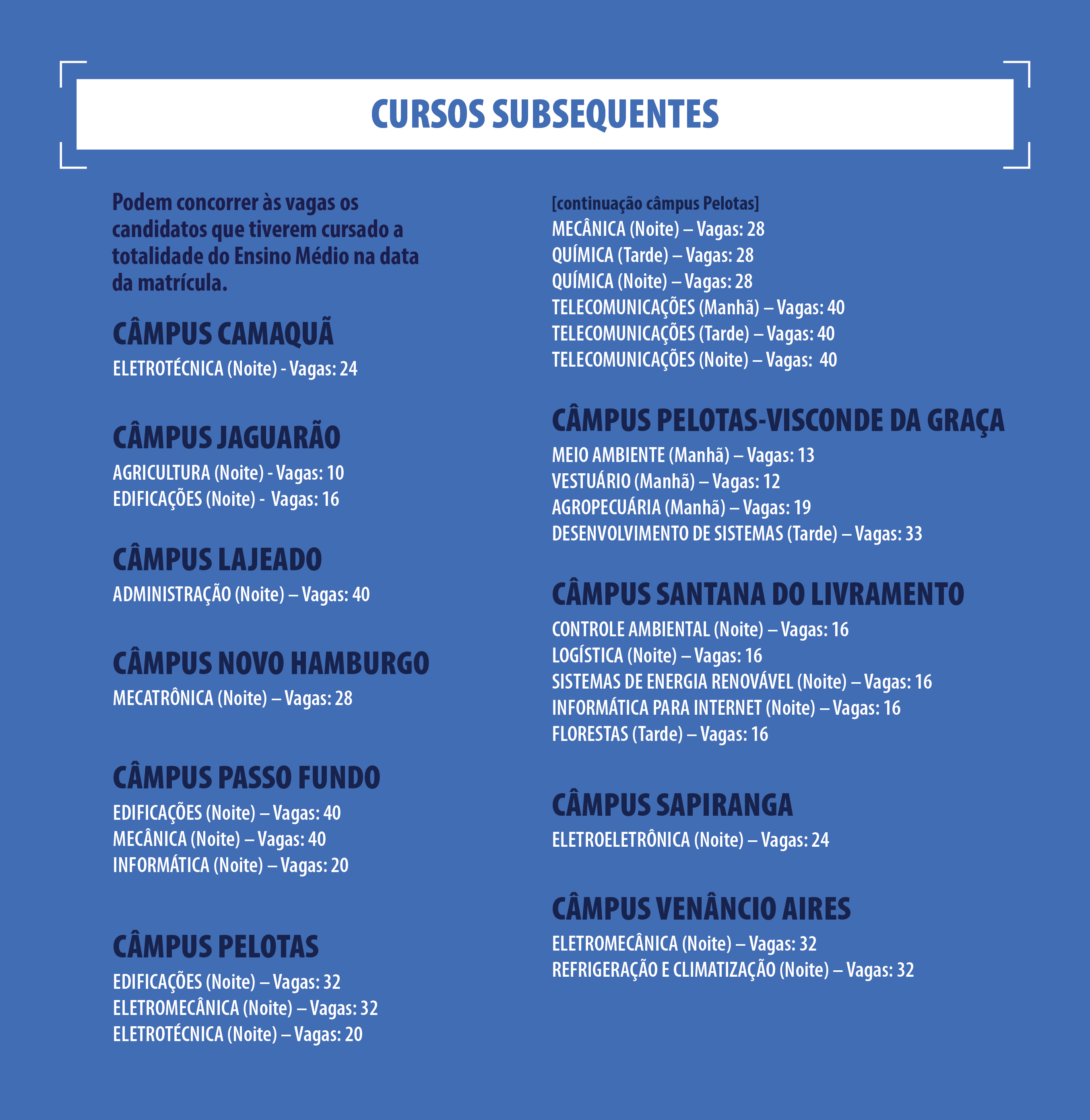 Ainda não se inscreveu? Que tal conferir quais cursos os câmpus do IFSul estão oferecendo neste vestibular e quantas vagas são?