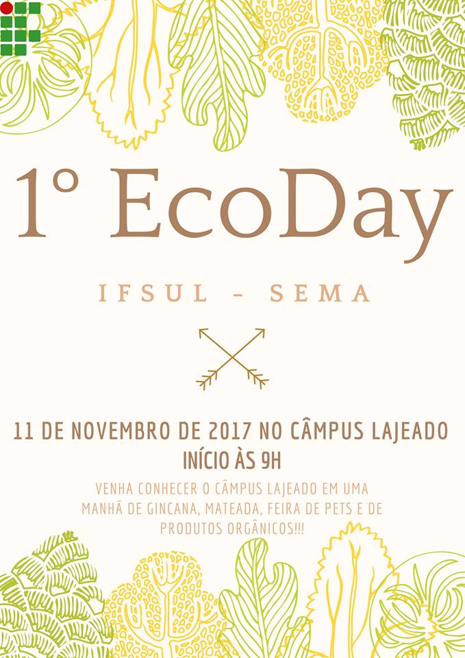 Neste sábado (11), o câmpus Lajeado promoverá uma manhã cheia de atividades voltadas à preservação do meio ambiente. Das 9h ao meio-dia, o 1º EcoDay incluirá em sua programação gincana ambiental, mateada, venda de produtos orgânicos e feira de adoção de cães. O evento, aberto à comunidade, é organizado pelo Núcleo de Gestão Ambiental Integrada (Nugai) da unidade e pela Secretaria do Meio Ambiente (Sema) de Lajeado.
