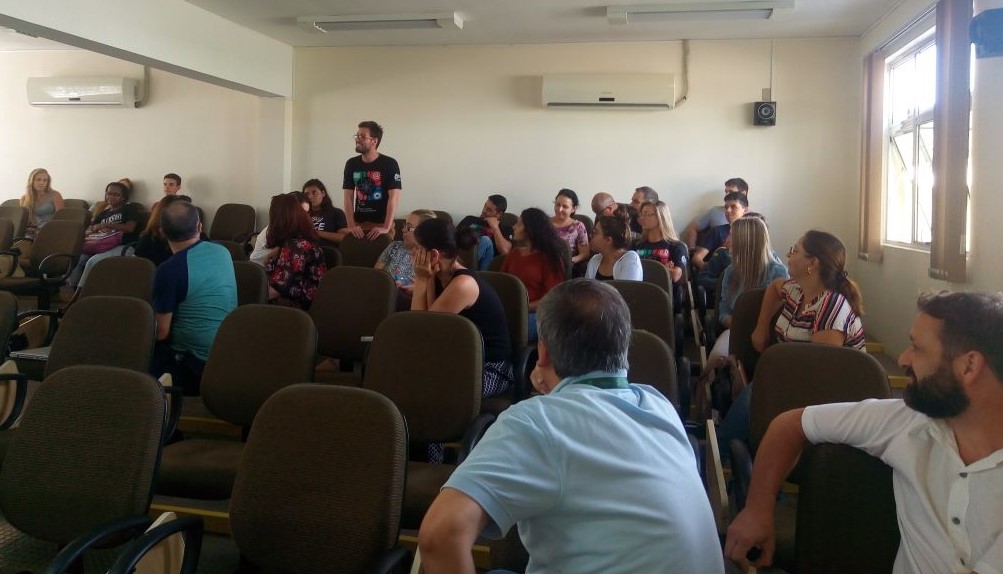 Já no câmpus Camaquã, os alunos da especialização em Práticas de Ensino foram recebidos no auditório pelo professor da unidade e pesquisador na área de formação docente, Josué Michels, que ministrou uma palestra sobre o tema “Sou um professor pesquisador?”. O intuito da discussão proposta pelo docente era de ajudar a identificar atitudes em sala de aula que seriam caracterizadas como uma postura de um professor pesquisador ou de um transmissor de conhecimento.