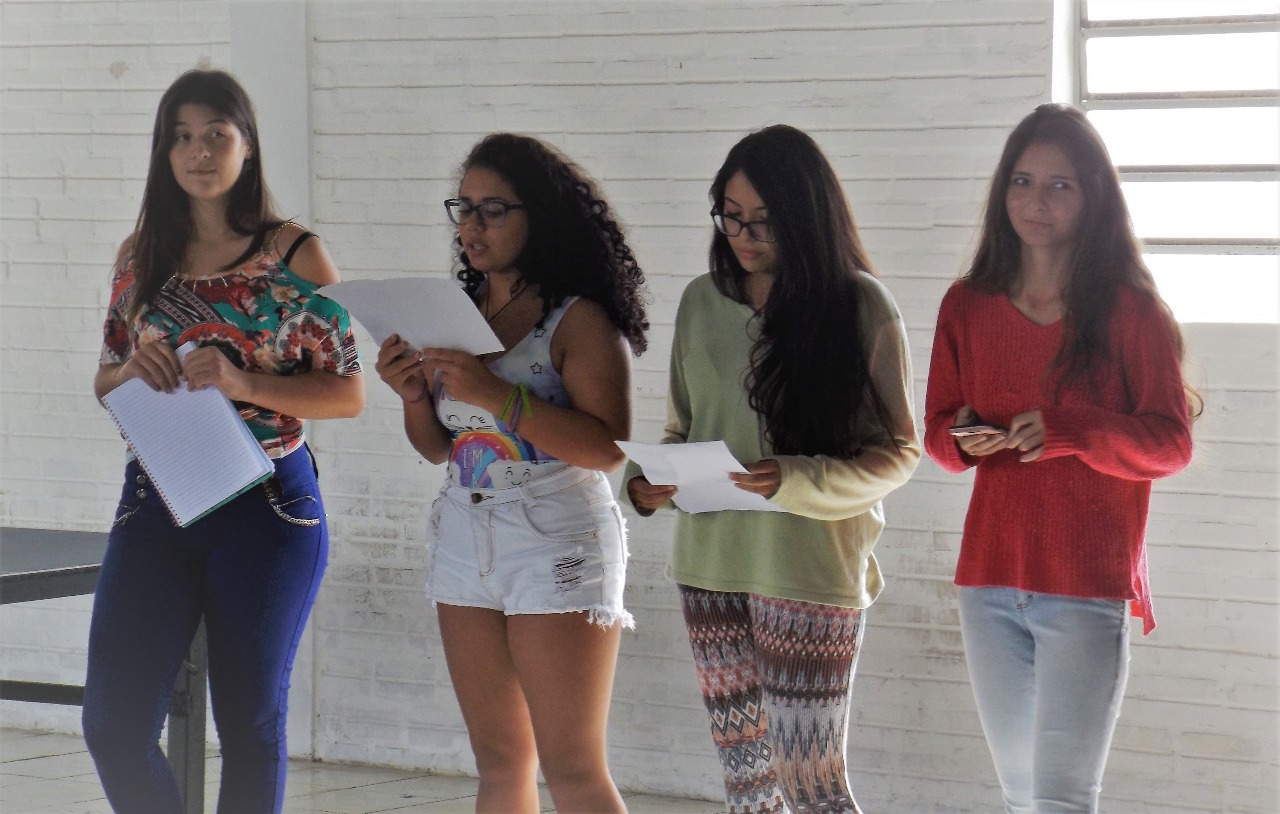 O dia 8 também foi de debate no câmpus Venâncio Aires. Estudantes promoveram reflexões, intervenções teatrais e conversas sobre diferentes temas relacionados à mulher, como estereótipo, padrões estéticos e a definição do que é beleza. Também houve espaço para a literatura, com a leitura de poemas do livro “Outros jeitos de usar a boca”, que aborda, entre outros temas, a experiência da violência, do abuso e do amor.