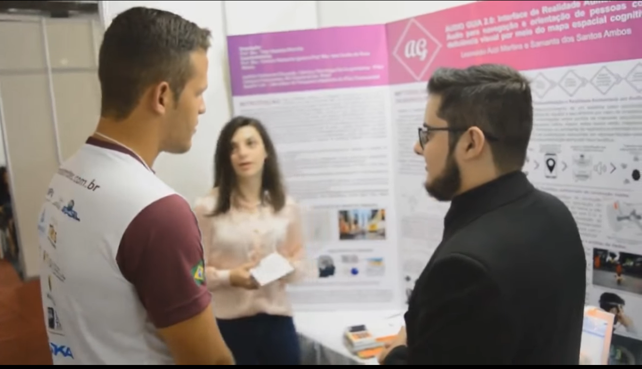 Alunos do curso técnico integrado em mecatrônica do câmpus Charqueadas, Samanta dos Santos Ambos e Leonardo Azzi Martins elaboraram juntos com seus orientadores o projeto “Áudio Guia 2.0: interface de realidade aumentada em áudio para navegação e orientação de pessoas com deficiência visual por meio do mapa espacial cognitivo”. Ao longo de quase 10 meses, os estudantes se dedicaram ao desenvolvimento de uma plataforma capaz de transformar informações de geolocalização em estímulos auditivos, uma forma de orientação para pessoas com deficiência visual.