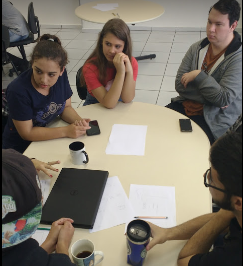 A atividade de terça foi dividida em três partes. A primeira foi a reunião dos participantes em mesas, cada uma debatendo um tema diferente – os alunos podiam circular livremente pelas mesas, de acordo com seus interesses. A partir daí, o objetivo era que cada conteúdo fosse discutido num grupo mais amplo, com a chance de eliminar dúvidas com os professores presentes.