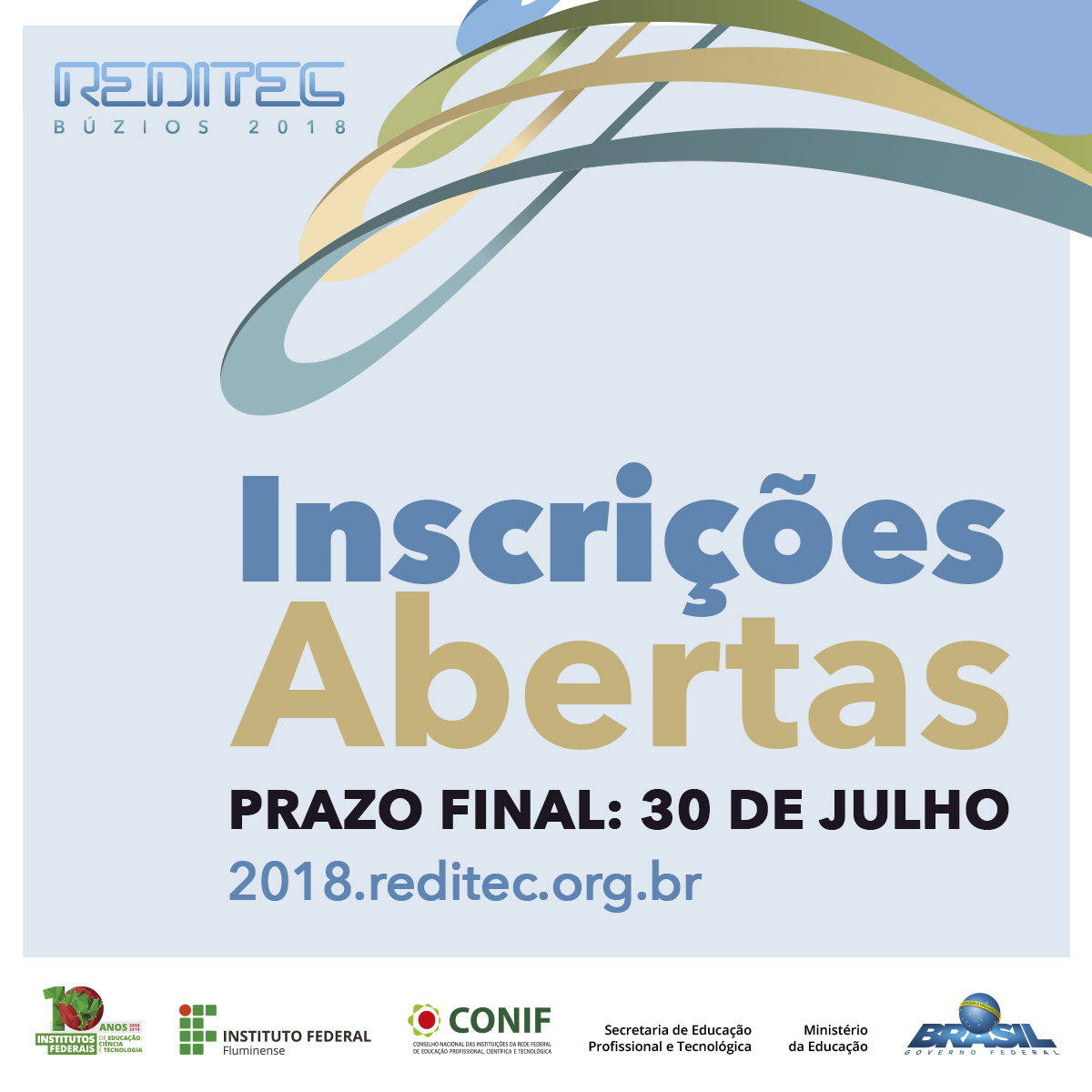 Estão abertas as inscrições para a 42ª Reunião anual dos Dirigentes das Instituições Federais de Educação Profissional e Tecnológica (Reditec 2018), que será sediada e organizada pelo Instituto Federal Fluminense (IFF), de 10 a 14 de setembro, em Búzios, no Rio de Janeiro.