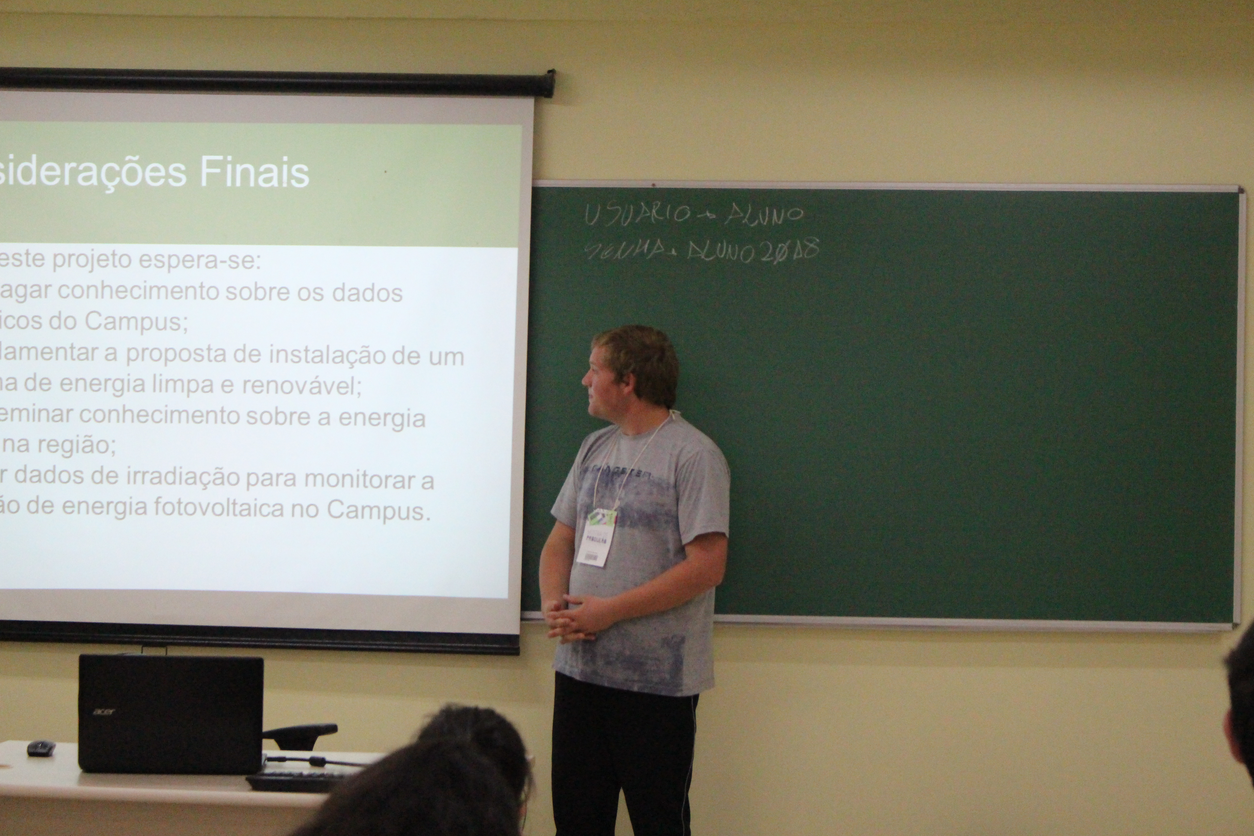 Já Guilherme tenta resolver o problema da geração de energia no câmpus Venâncio Aires. O projeto que apresenta visa avaliar o potencial de geração de energia limpa da unidade, levando em conta a possibilidade de se usar energia eólica ou solar.