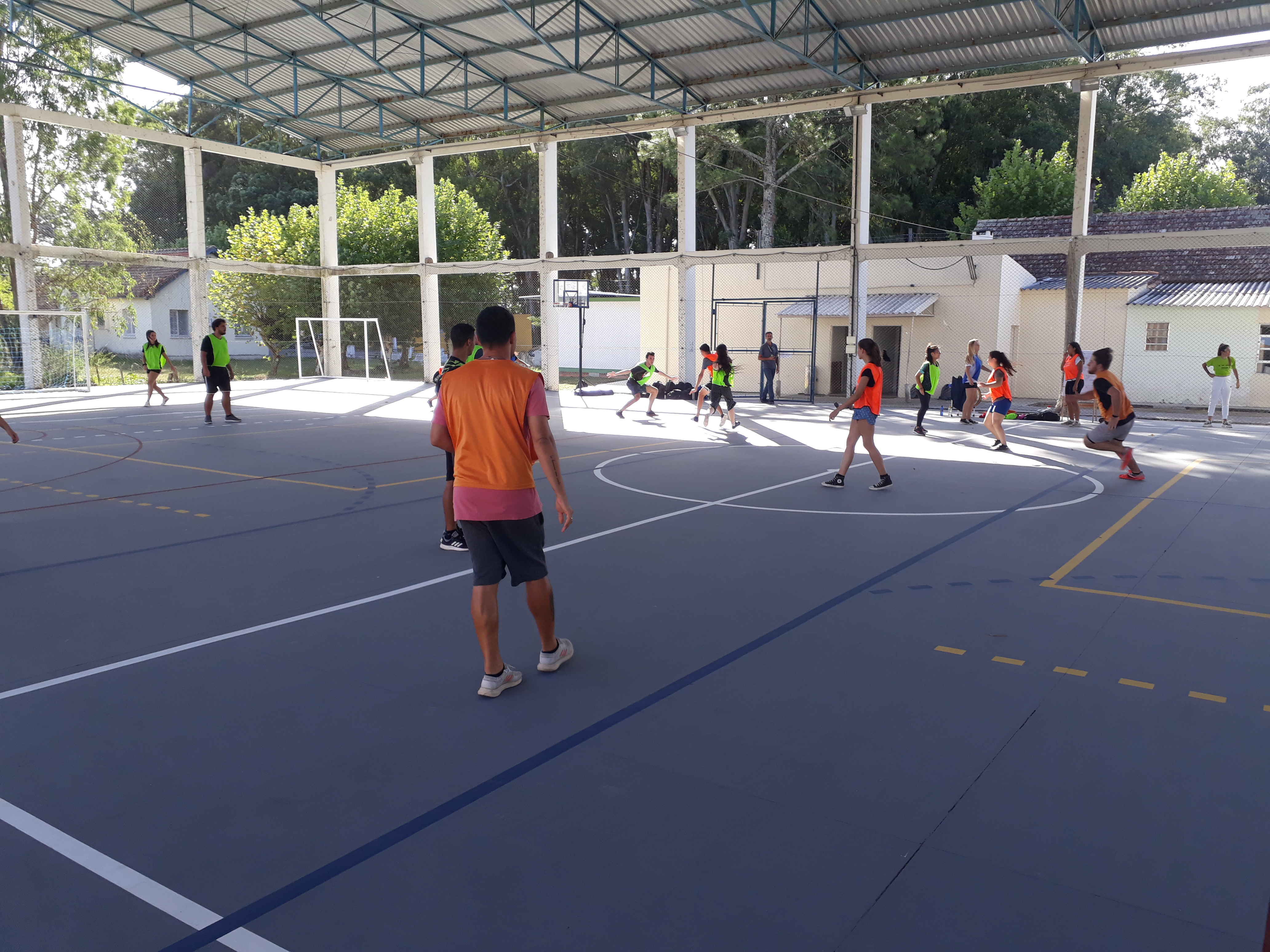 Foi entregue, nessa terça (03), à comunidade escolar do câmpus Pelotas-Visconde da Graça, a quadra esportiva coberta, com novas adequações para este ano. Para inaugurar simbolicamente as novas melhorias, aconteceu a simulação de uma partida, que contou com a participação de alunos, do reitor Flávio Nunes, e, do diretor-geral do câmpus, Álvaro Nebel.