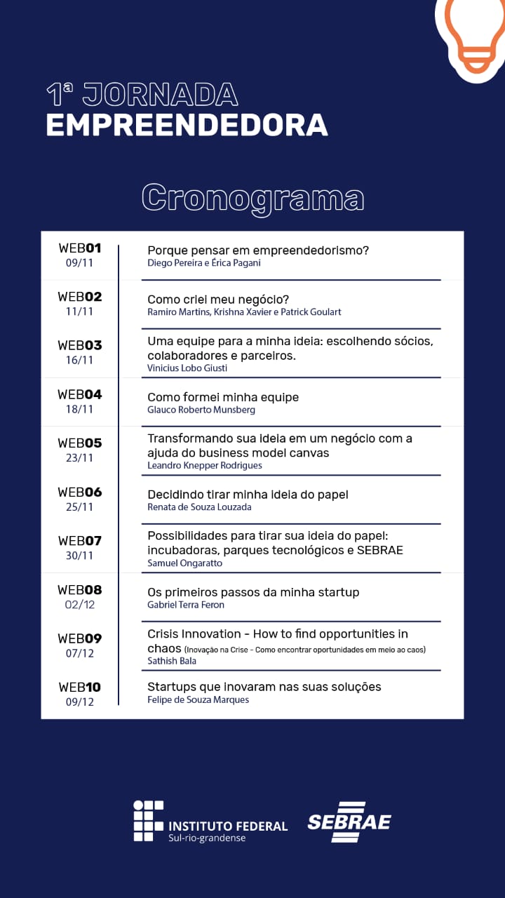 1ª Jornada Empreendedora do IFSul: webinário vai debater possibilidades para tirar uma ideia do papel