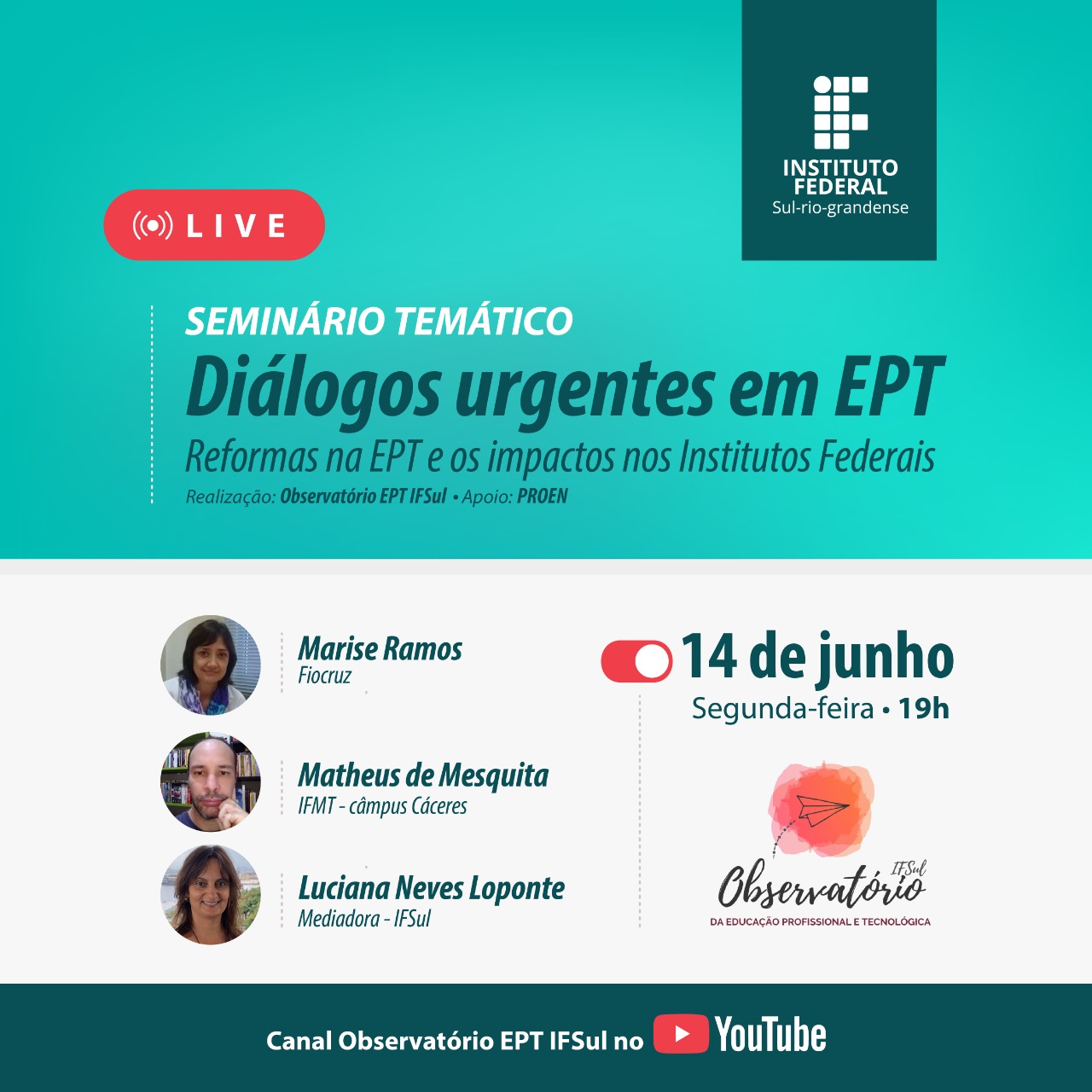 O seminário é realizado pelo Observatório da EPT do IFSul e conta com o apoio da Pró-reitoria de Ensino (Proen).