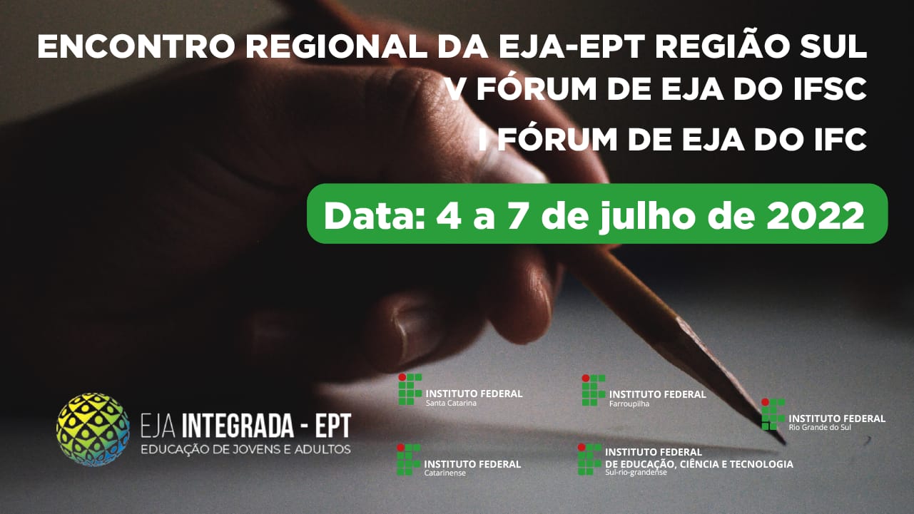 O evento virtual terá como tema: "Políticas da Educação de Jovens e Adultos Integrada à Educação Profissional nos Institutos Federais da Região Sul: pontos e contrapontos"