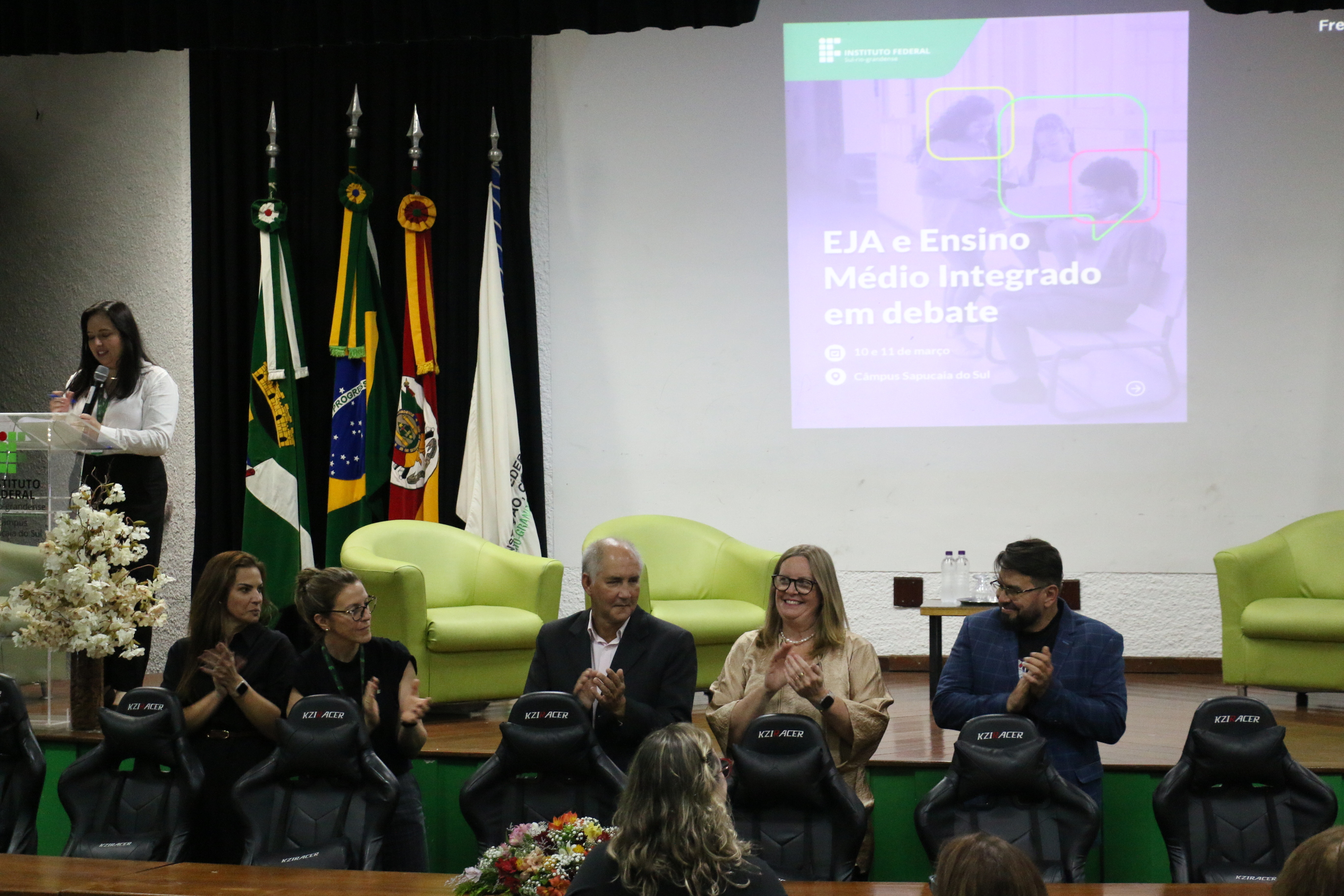 Evento realizado no câmpus Sapucaia do Sul reuniu comunidade acadêmica e especialistas para discutir políticas e estratégias para o fortalecimento da EJA-EPT e do Ensino Médio Integrado