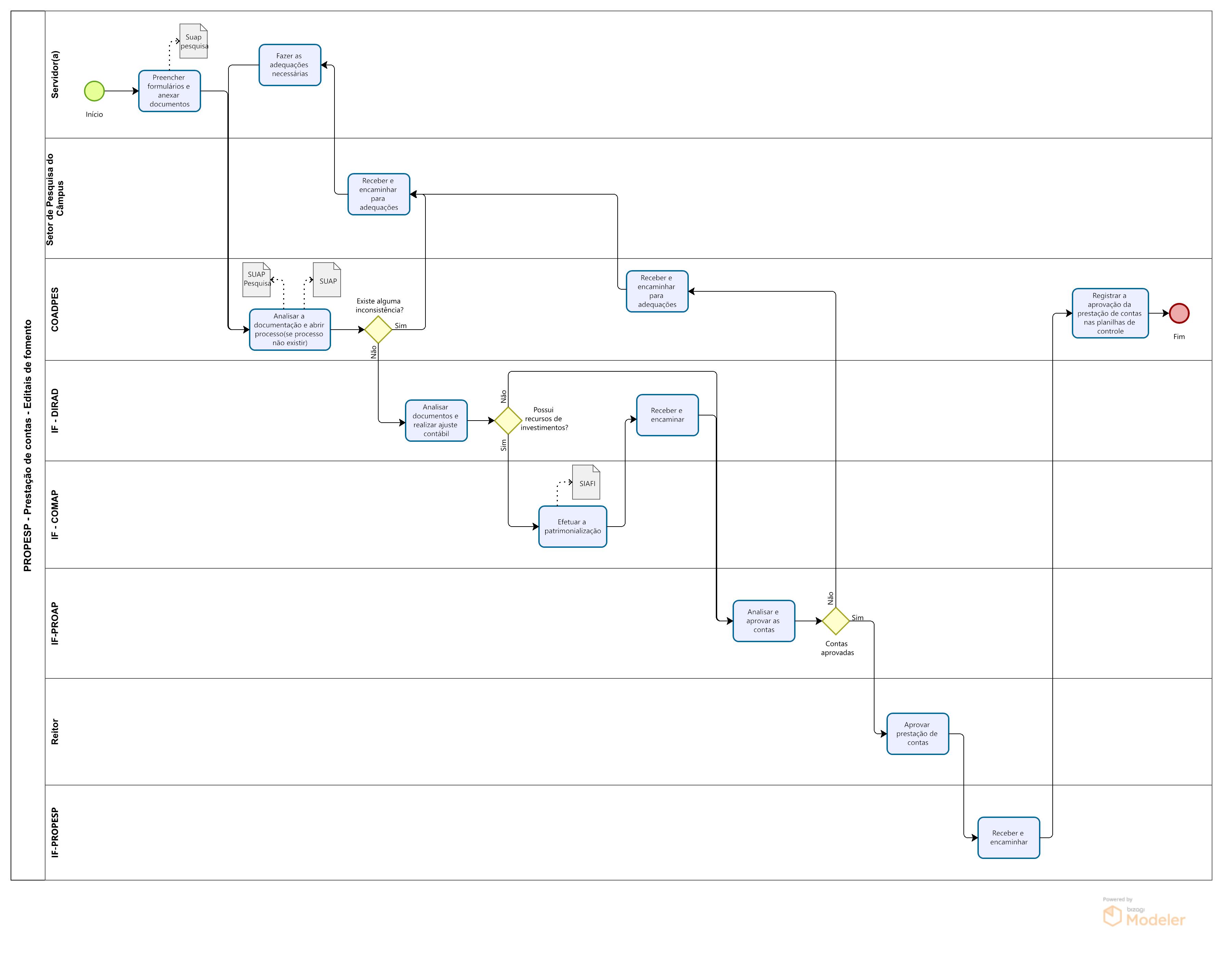 - Prestação de Contas de Recursos Financeiros referente ao Auxílio Financeiro a Pesquisadores visando à execução dos Editais da PROPESP - Fluxo