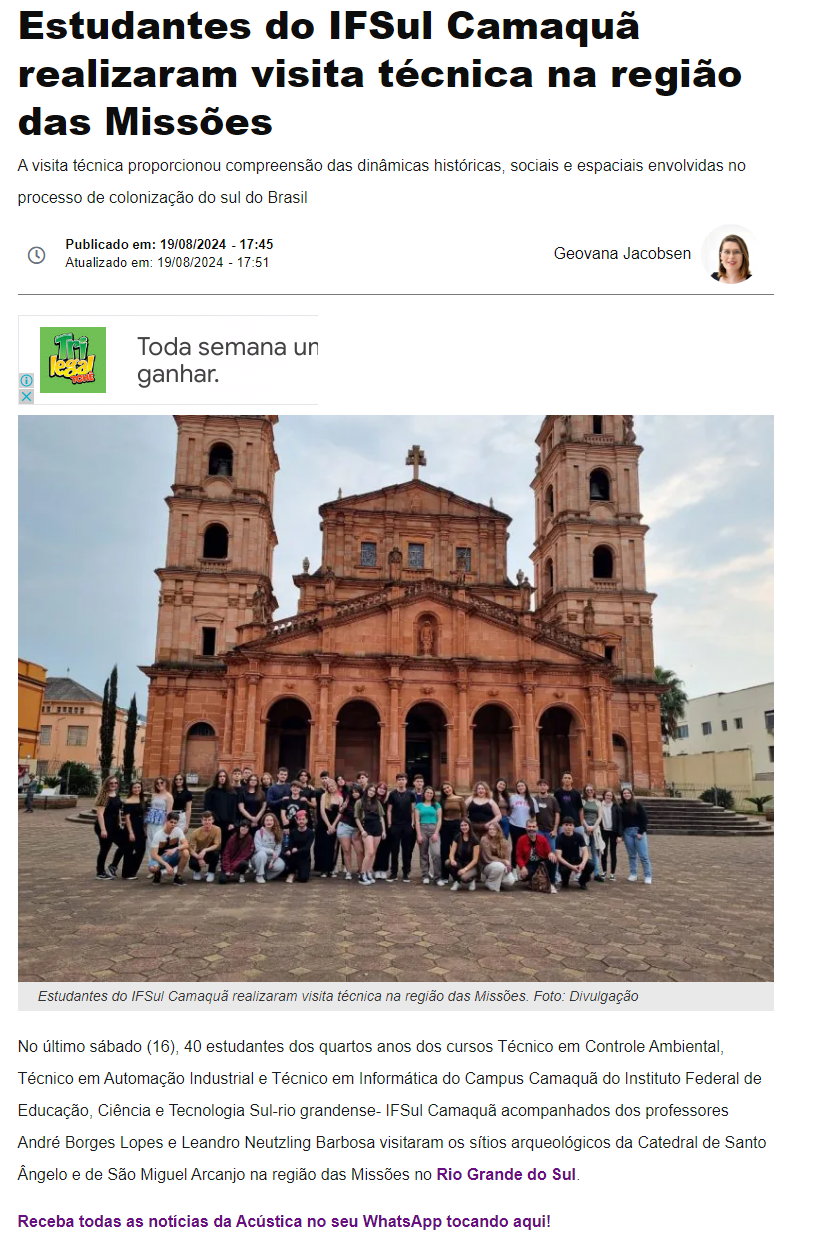Rádio Acústica FM - Estudantes do IFSul Camaquã realizaram visita técnica na região das Missões