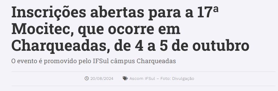 Portal de Camaquã - Inscrições abertas para a 17ª Mocitec, que ocorre em Charqueadas, de 4 a 5 de outubro