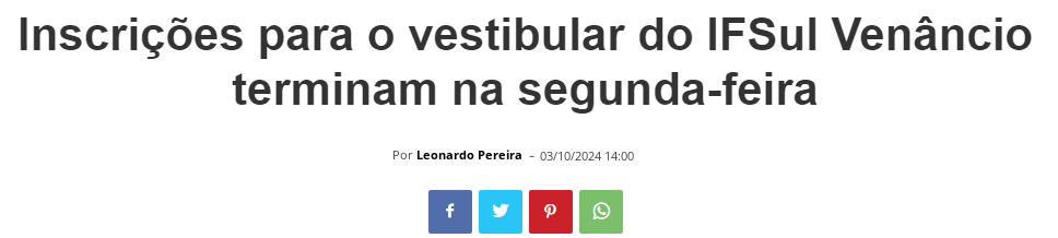 Folha do Mate - Inscrições para o vestibular do IFSul Venâncio terminam na segunda-feira