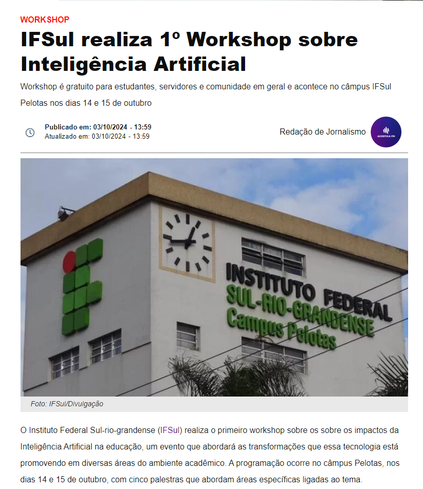 Rádio Acústica FM - IFSul realiza 1º Workshop sobre Inteligência Artificial