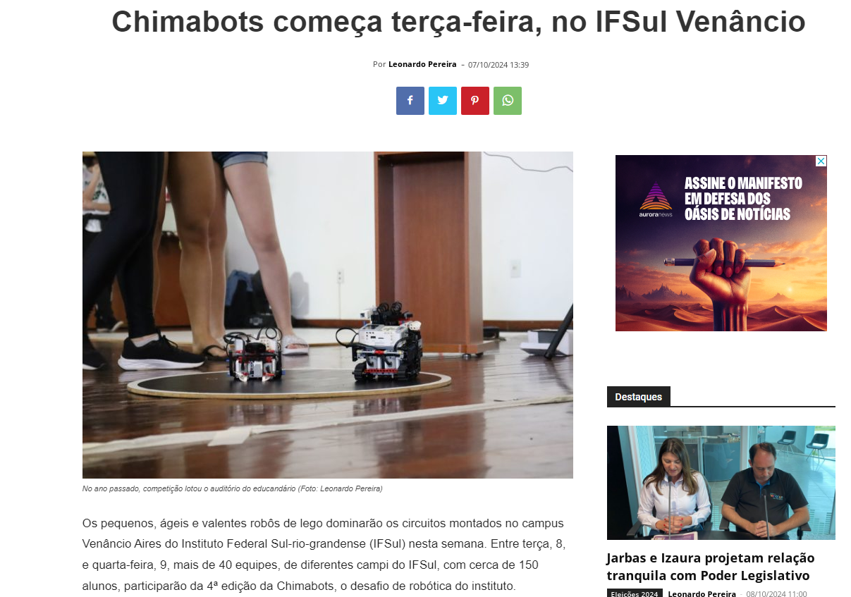 Folha do Mate - Chimabots começa terça-feira, no IFSul Venâncio