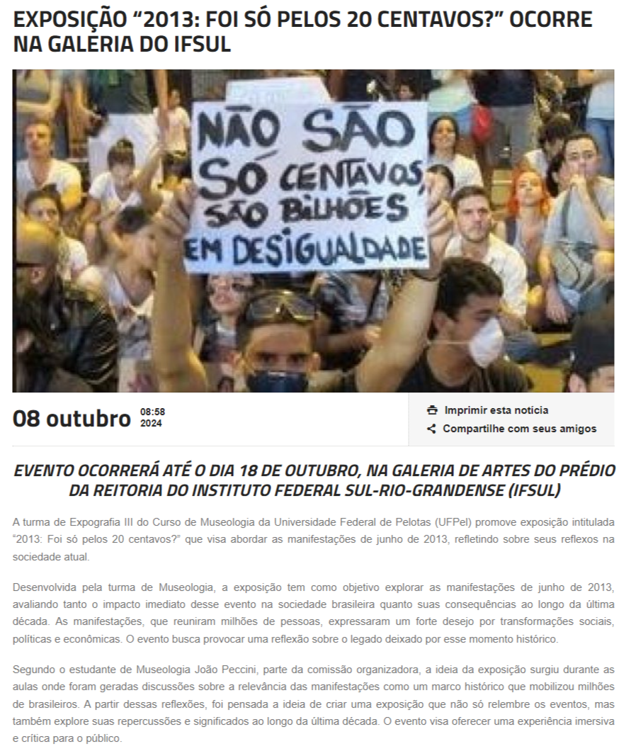 Diário da Manhã - Exposição “2013: Foi só pelos 20 centavos?” ocorre na Galeria do IFSul