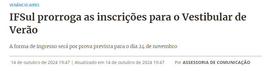 GAZ - IFSul prorroga as inscrições para o Vestibular de Verão
