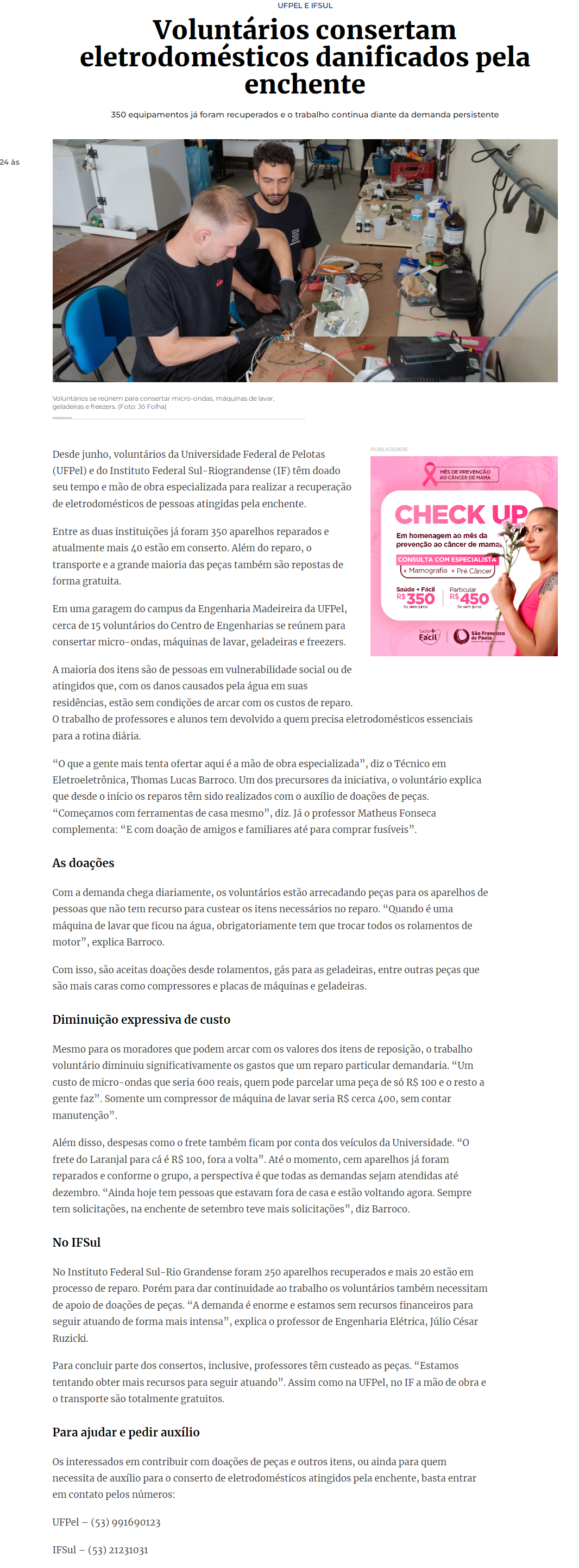 A Hora do Sul -Voluntários consertam eletrodomésticos danificados pela enchente